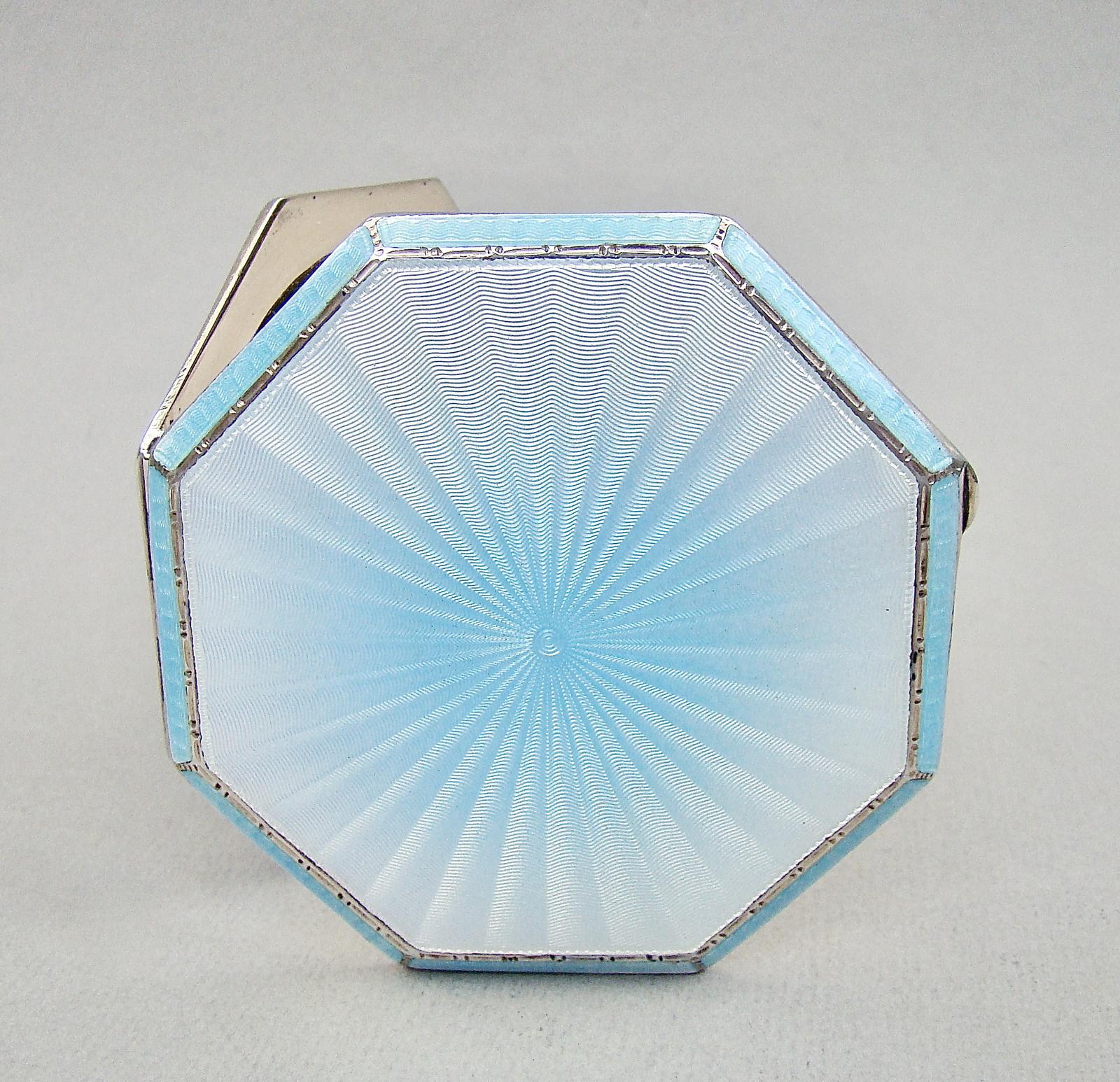 Rare & Fabulous Art Deco Silver & Guilloche Enamel Compact by Albert Carter, Birmingham 1936