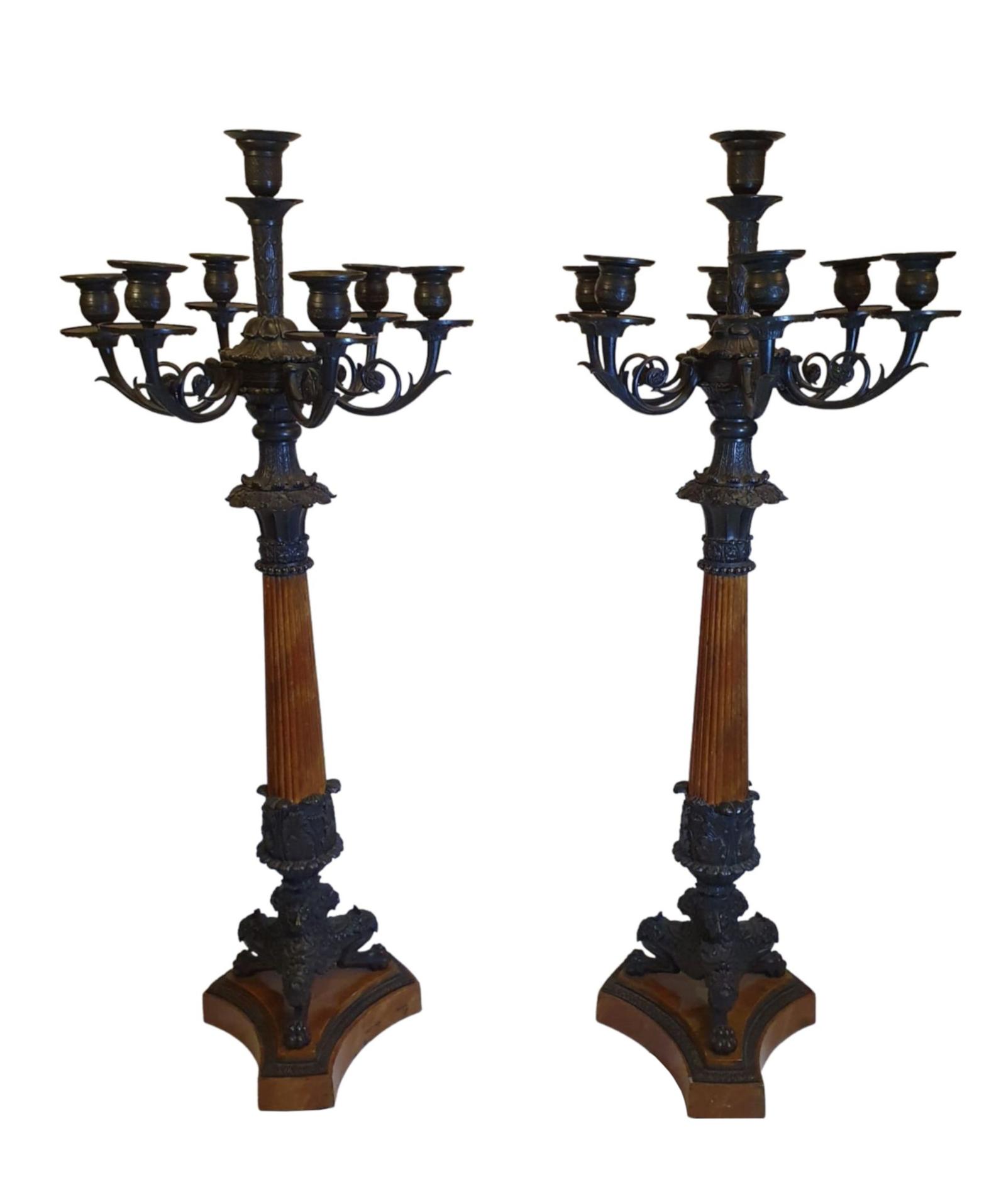 Rare & Fine Pair of 19th Century Bronze Candelabra in the Empire Style