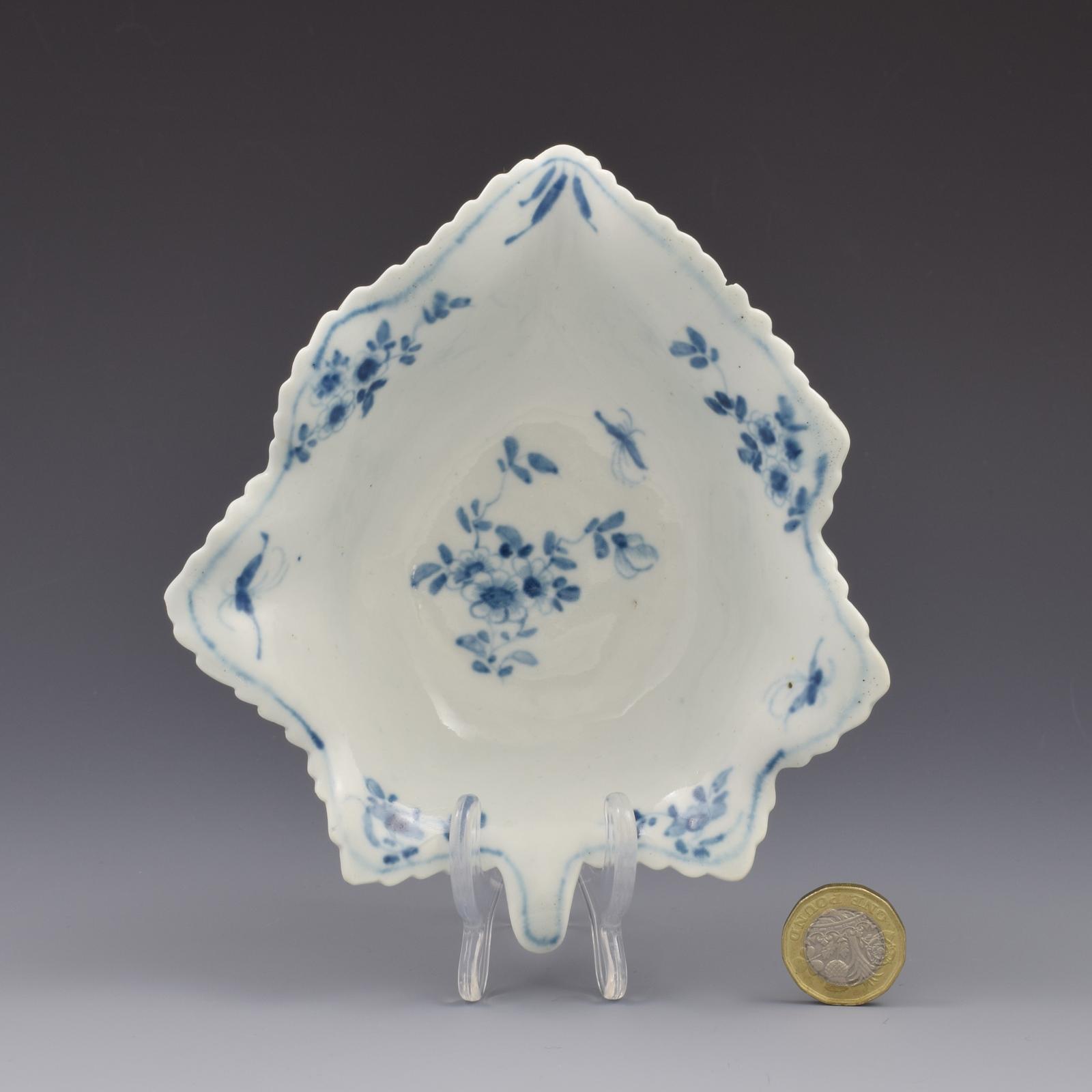 Reference: Worcester Blue & White Porcelain, 1751-1790, Branyan, French & Sandon, section I.E.41, these dishes referred to as "leaf trays".
