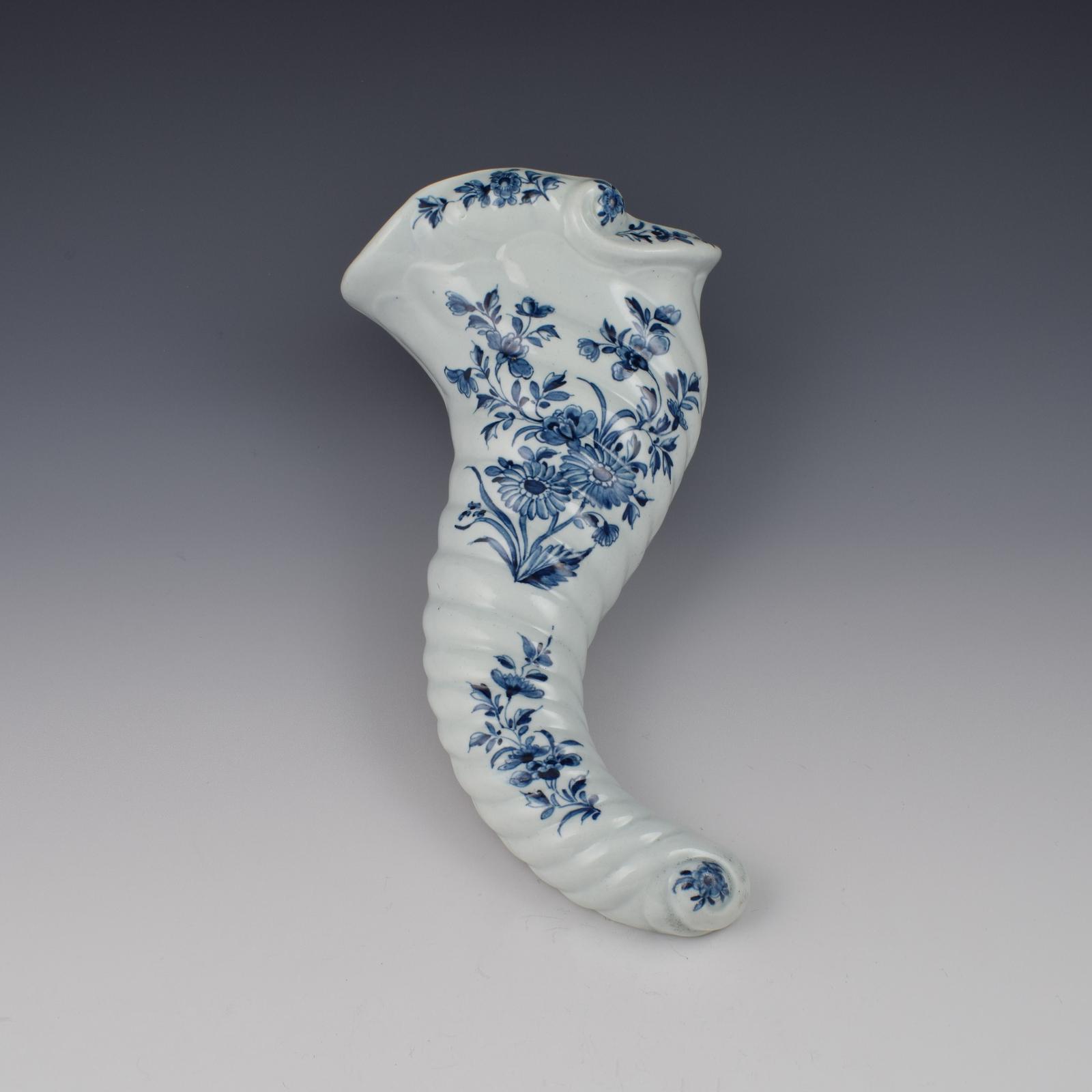 Rare First Period Worcester Porcelain Daisy Pattern Cornucopia Wall Pocket c.1760