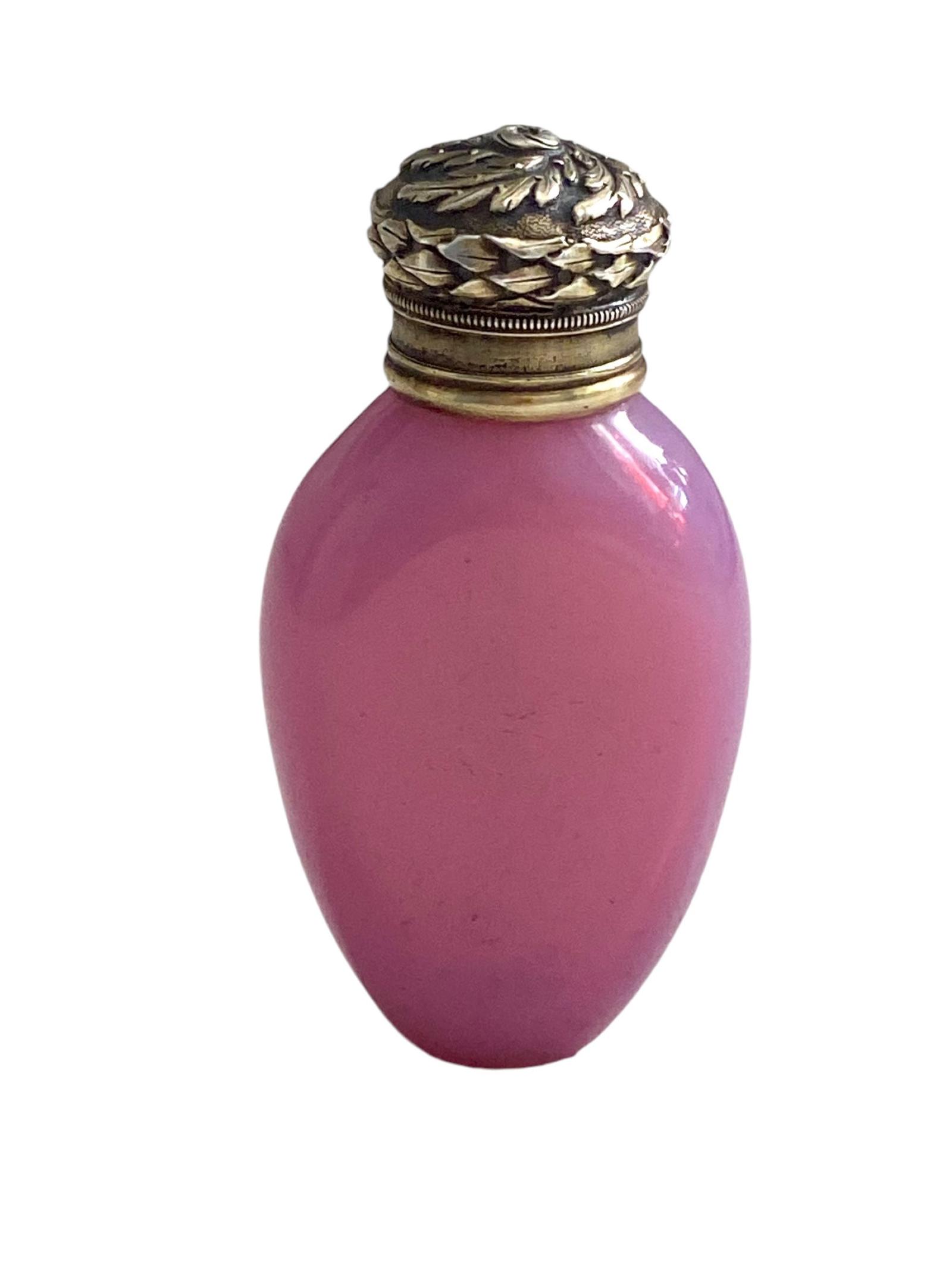 Rare French Antique Gorge de Pigeon Pink Opaline Glass Perfume Scent Bottle Silver Lid c.1880