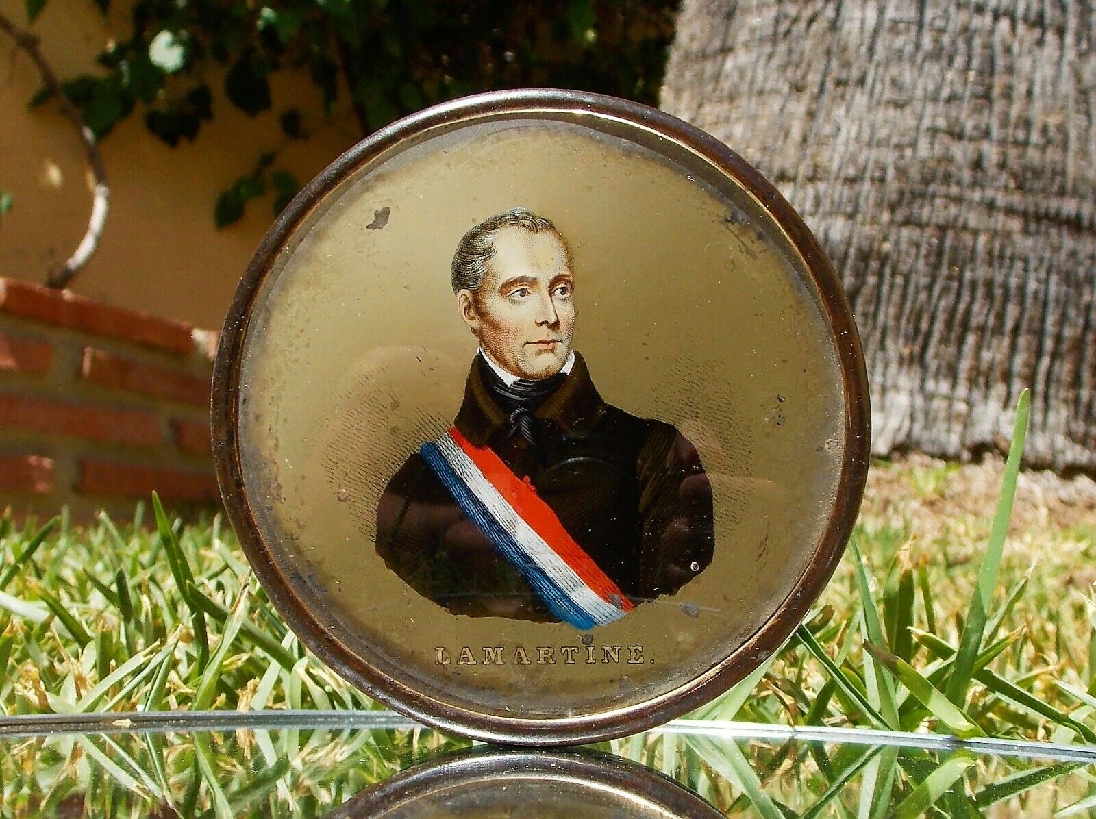 Rare French Georgian Alphonse De Lamartine Portrait Circular Snuff Box c.1835