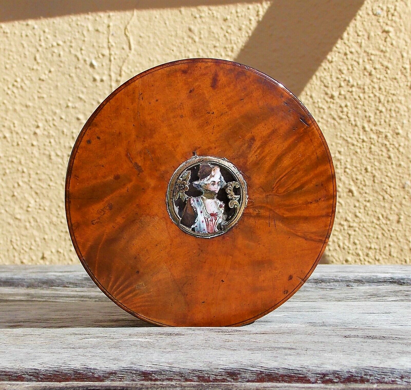 Rare French Georgian Burr Wood and Faux Tortoiseshell with Portrait of Lady Snuff Box c.1800
