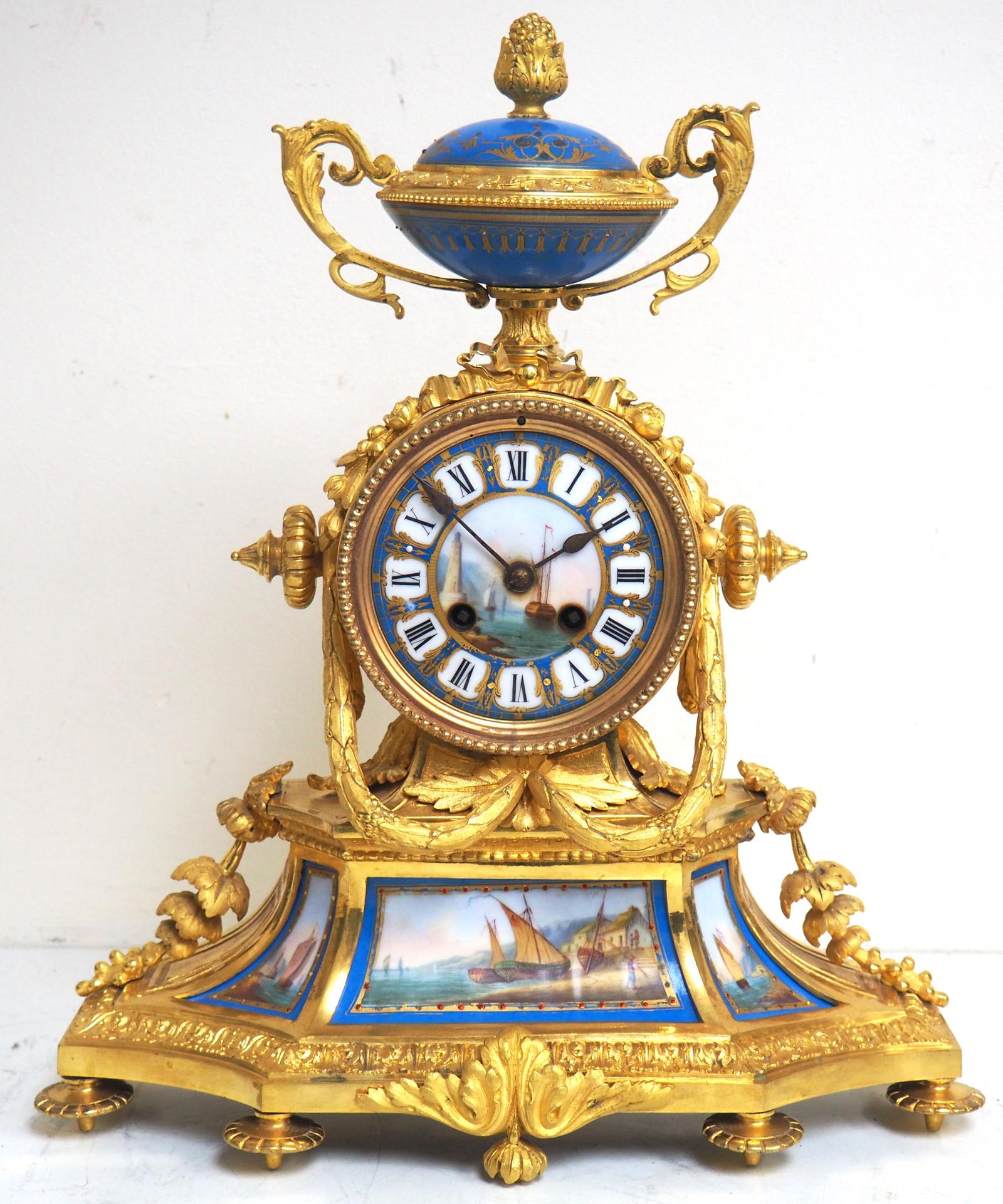Rare French Ormolu Blue Sevres Mantel Clock Shipping Design Striking 8-day Mantle Clock (1 of 12)