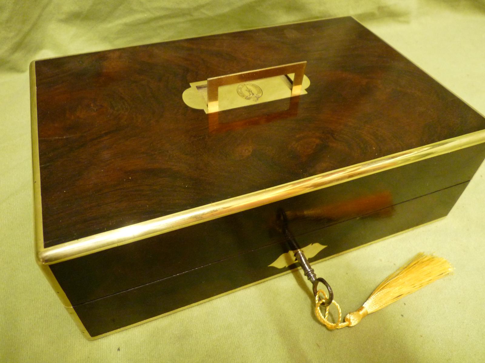 Rare Fully Brass Bound Gents Jewellery Box + Leather Case + Provenance c.1840
