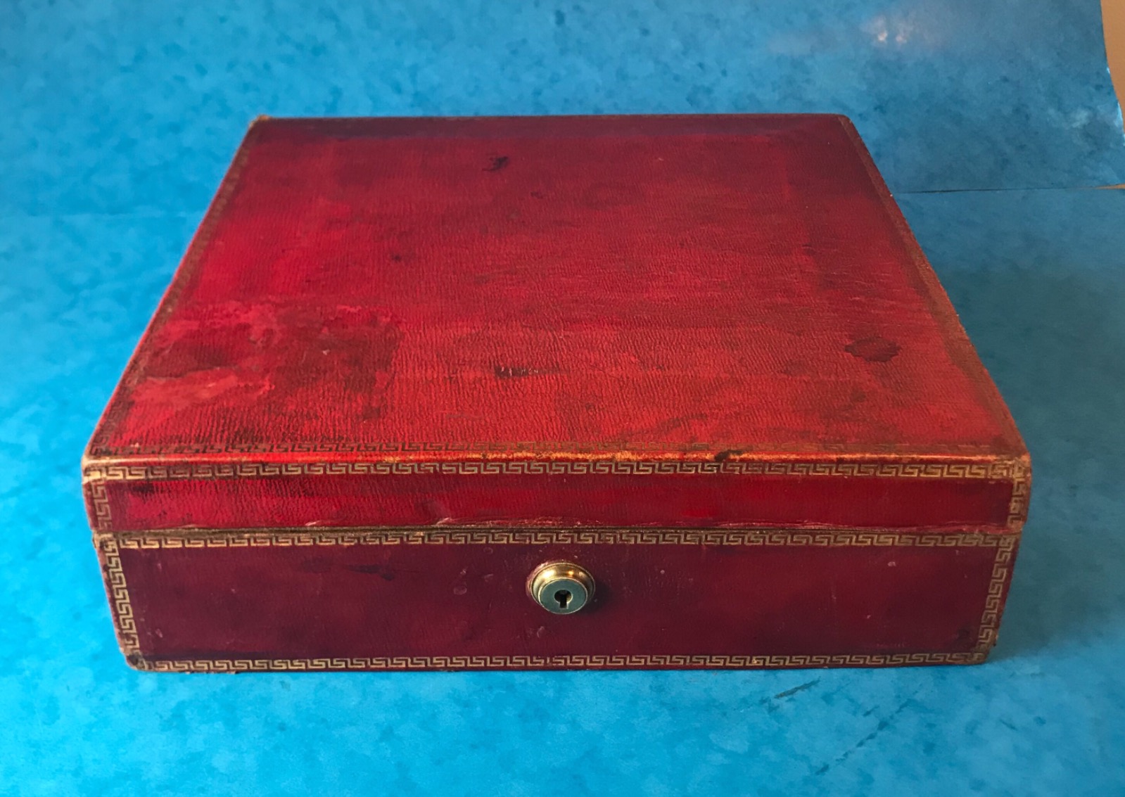 Rare Georgian 1820 Red Moroccan Leather Jewelry Box