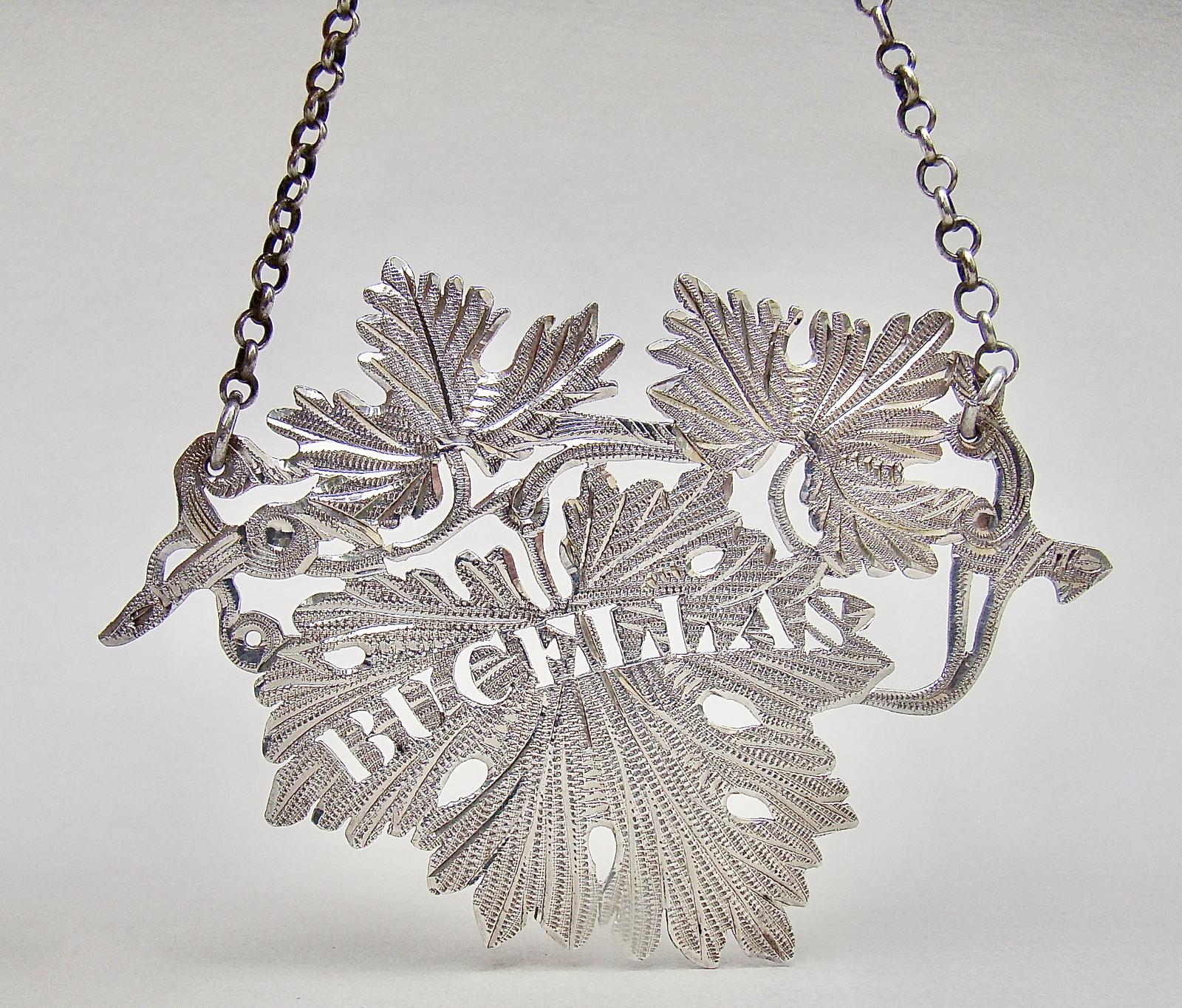 Rare Georgian Silver Vine Leaf Label for "Bucellas" by Ledsam, Vale & Wheeler, Birmingham 1827