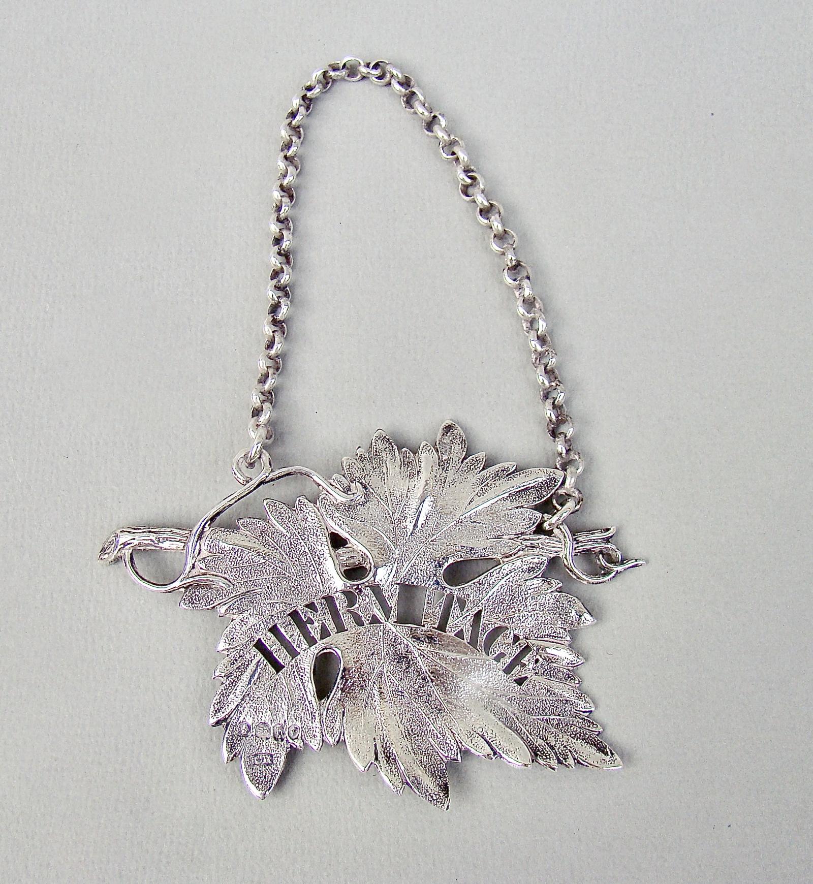 Rare Georgian Silver Vine Leaf Label For "Hermitage" by Charles Rawling, London 1823