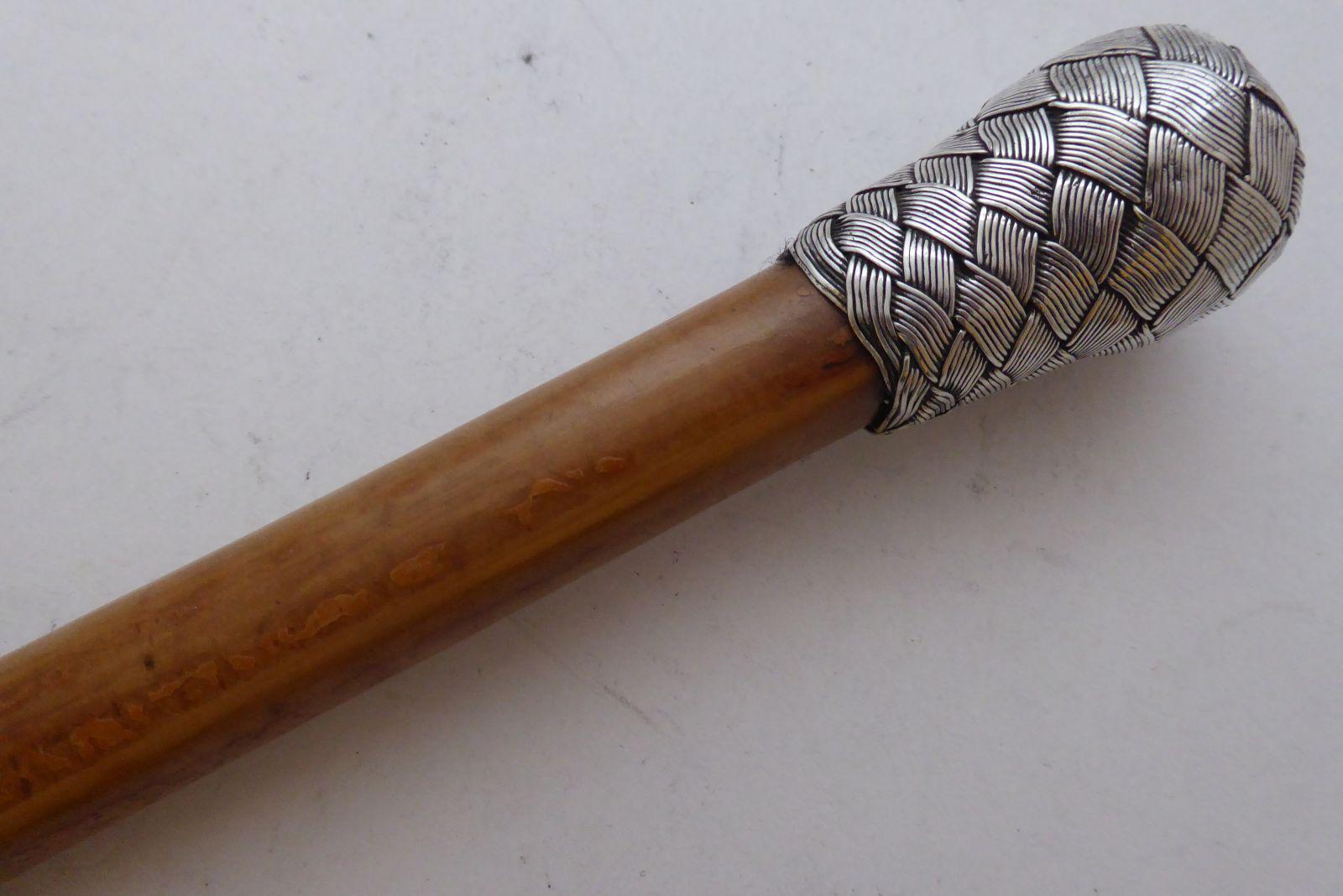 Rare Georgian Walking Stick Cane Solid Silver Pommel Malacca Shaft c.1800
