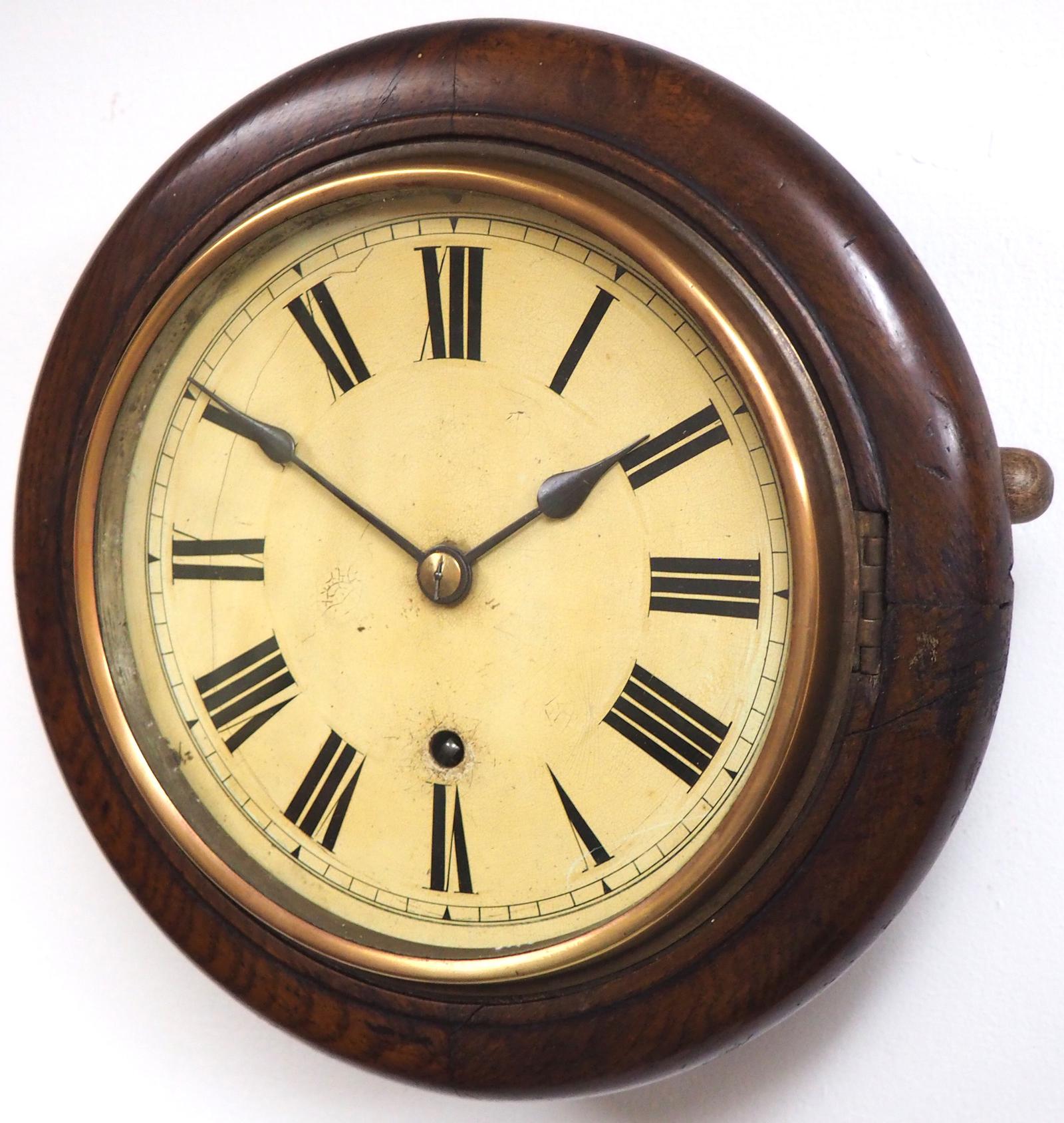 Rare HAC 7 Inch Dial Wall Clock Oak surround painted dial station clock