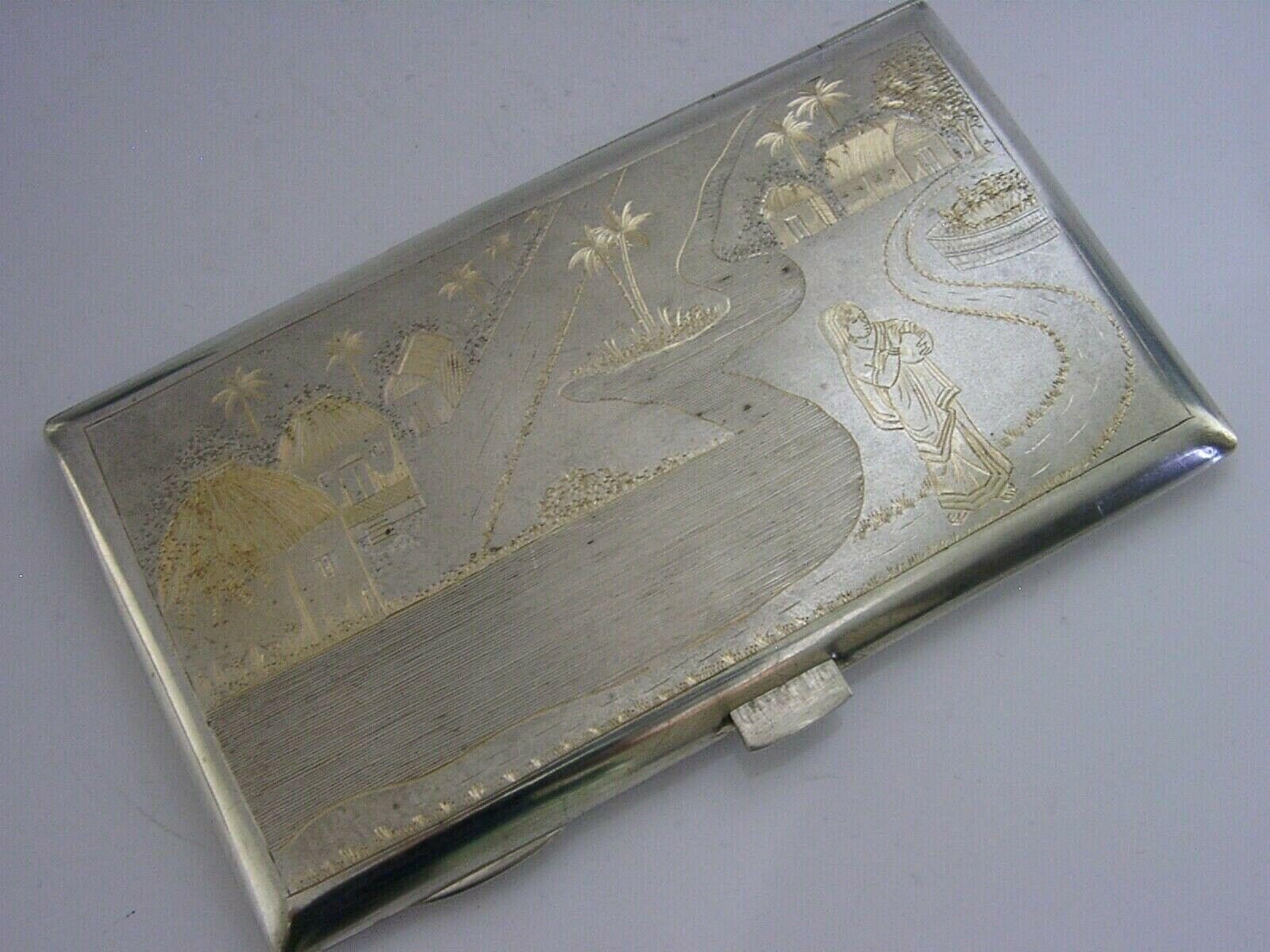 Rare Heavy 194g Indian Solid Sterling Silver Cigarette Case c.1920s Antique