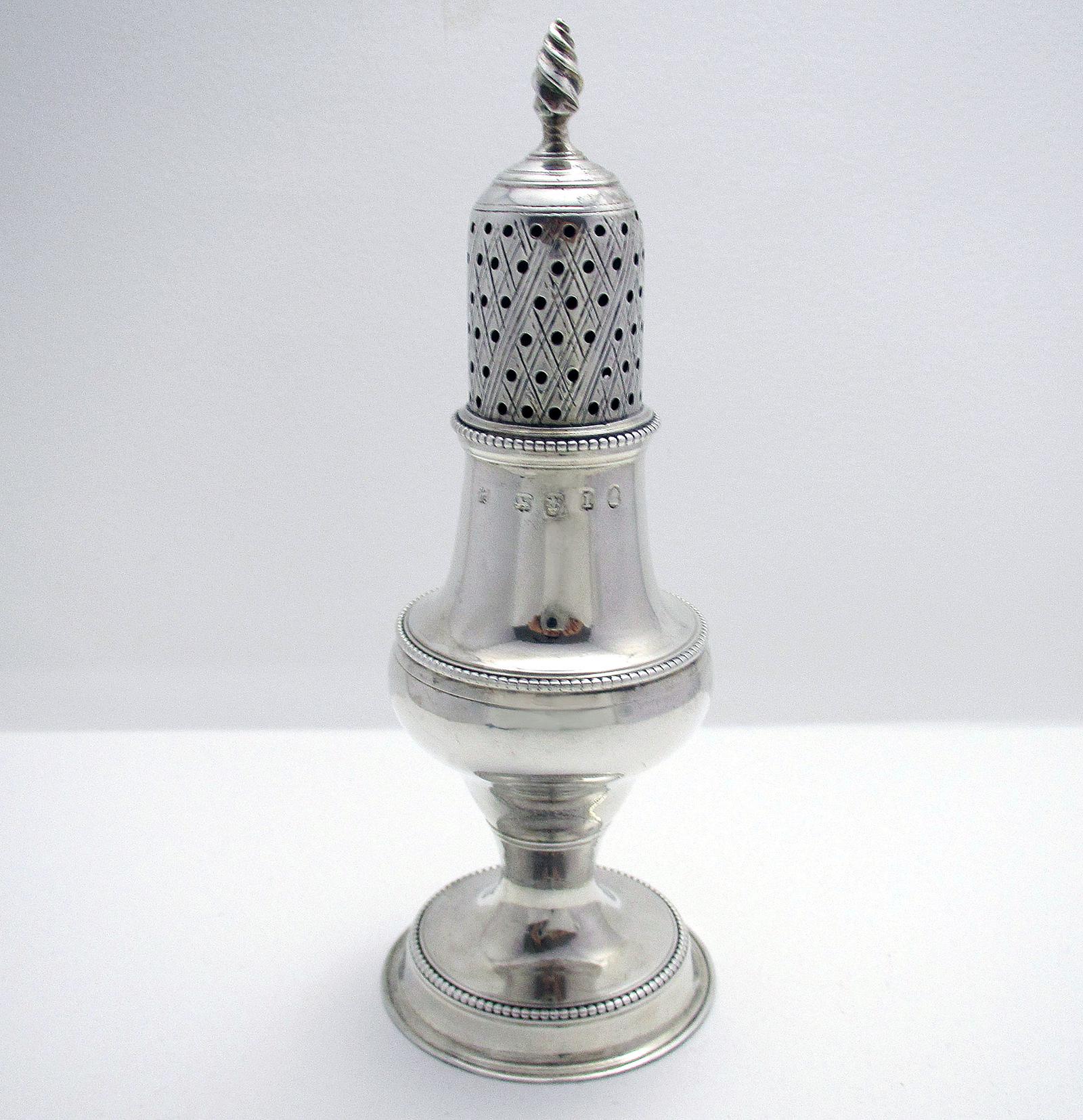 Rare Hester Bateman 1786 Solid Sterling Silver George III Antique Pepper Pot Sugar Caster Shaker. English Hallmarked 18th Century