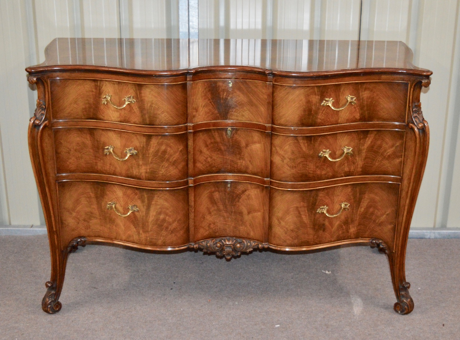 Rare HILLE of LONDON Walnut 9 Drawer Serpentine Commode Chest of Drawers