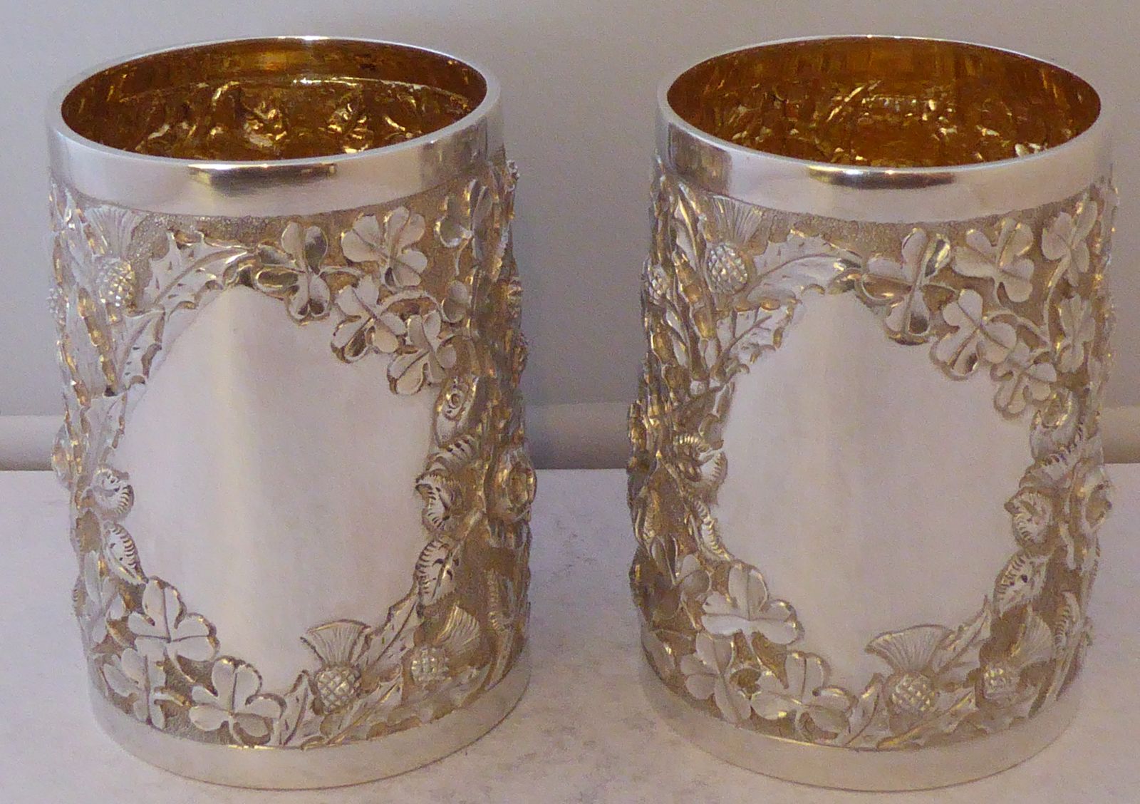 Rare Identical Pair of Hallmarked Solid Silver Christening Mug Tankard London 1898