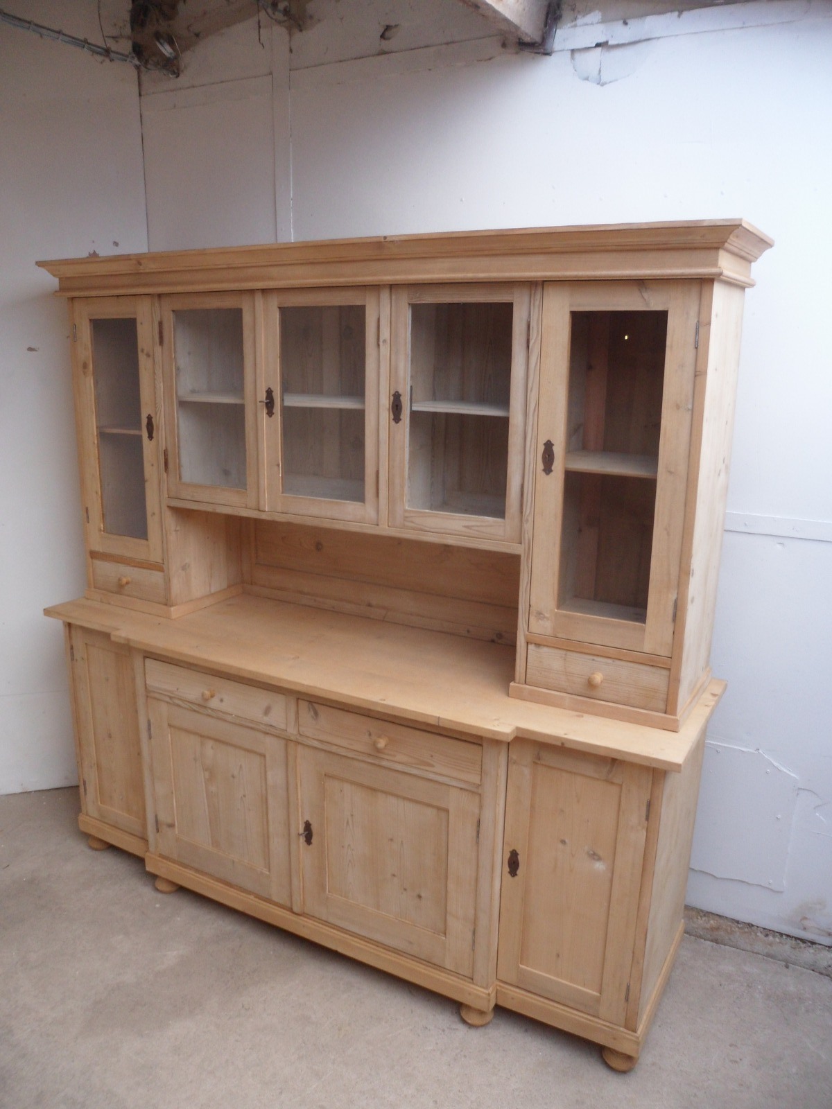 Rare Large 4 Door Old Pine Glazed Kitchen Dresser to wax / paint