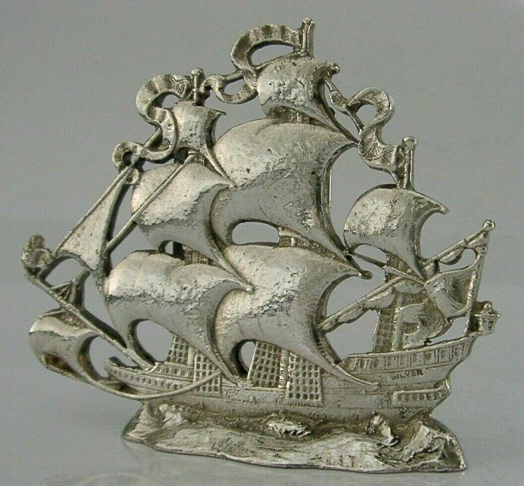 Rare Large Heavy 98g Sterling Silver Menu Holder Galleon Ship c.1920