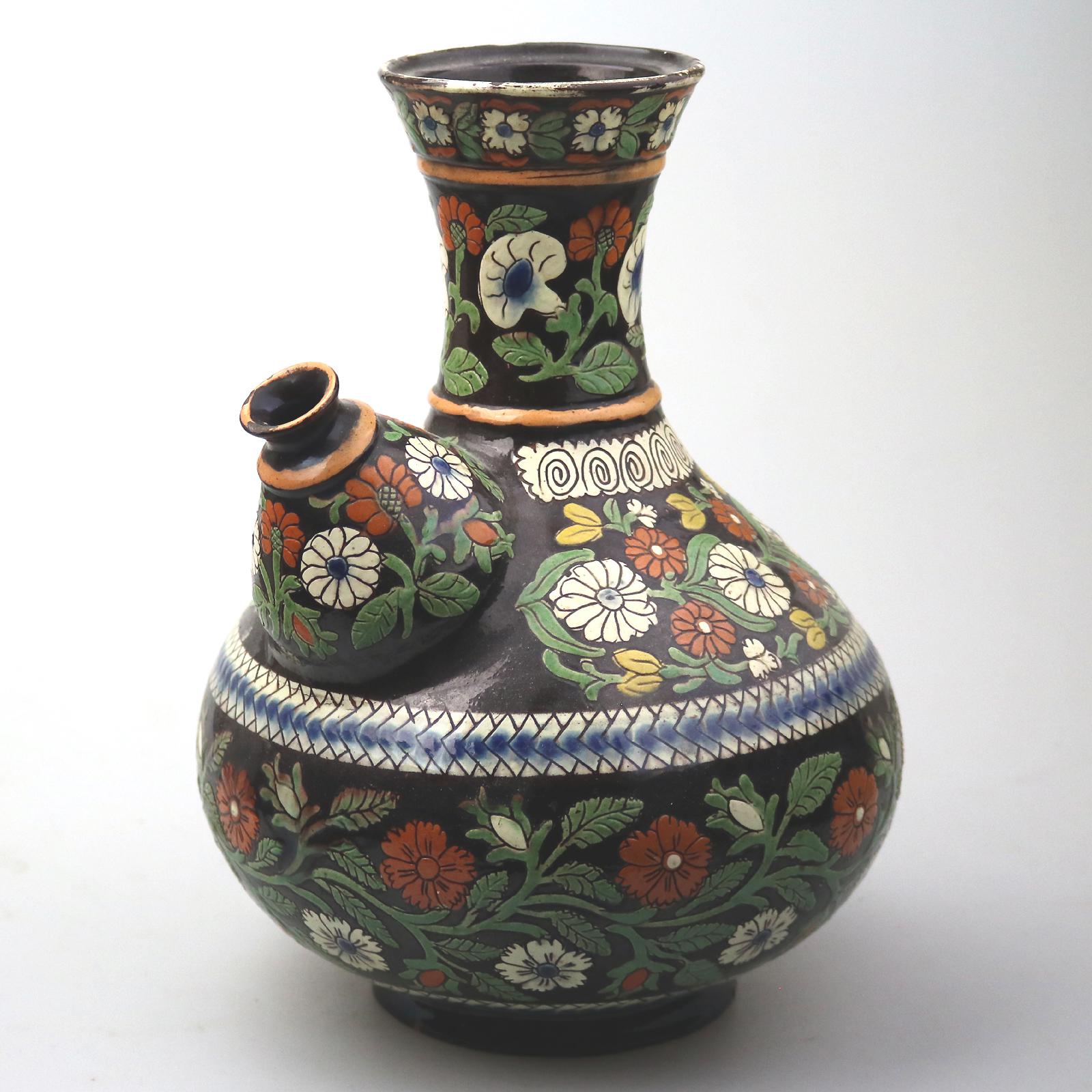 Rare & Large Swiss Thoune 'thun' Majolica Pottery Wine Pitcher - 19th Century
