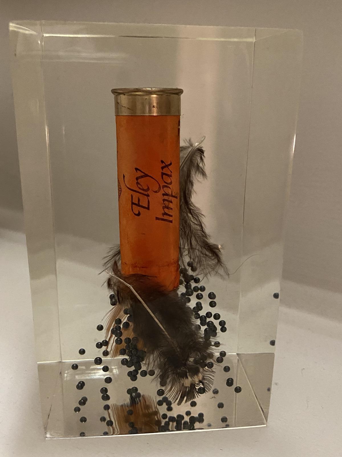 Rare Large Vintage Eley Impax Shotgun Cartridge Exploded in Lucite Paperweight 1970s