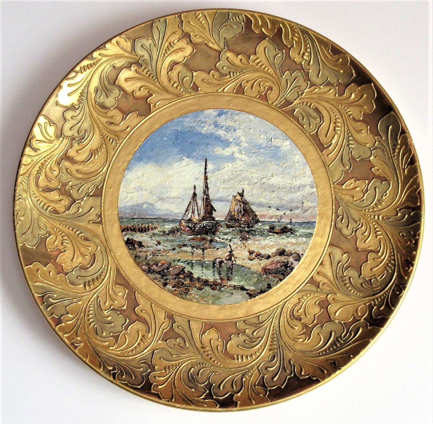 Rare & Large Wedgwood Plaque with Impasto Painting by Samuel Bateman