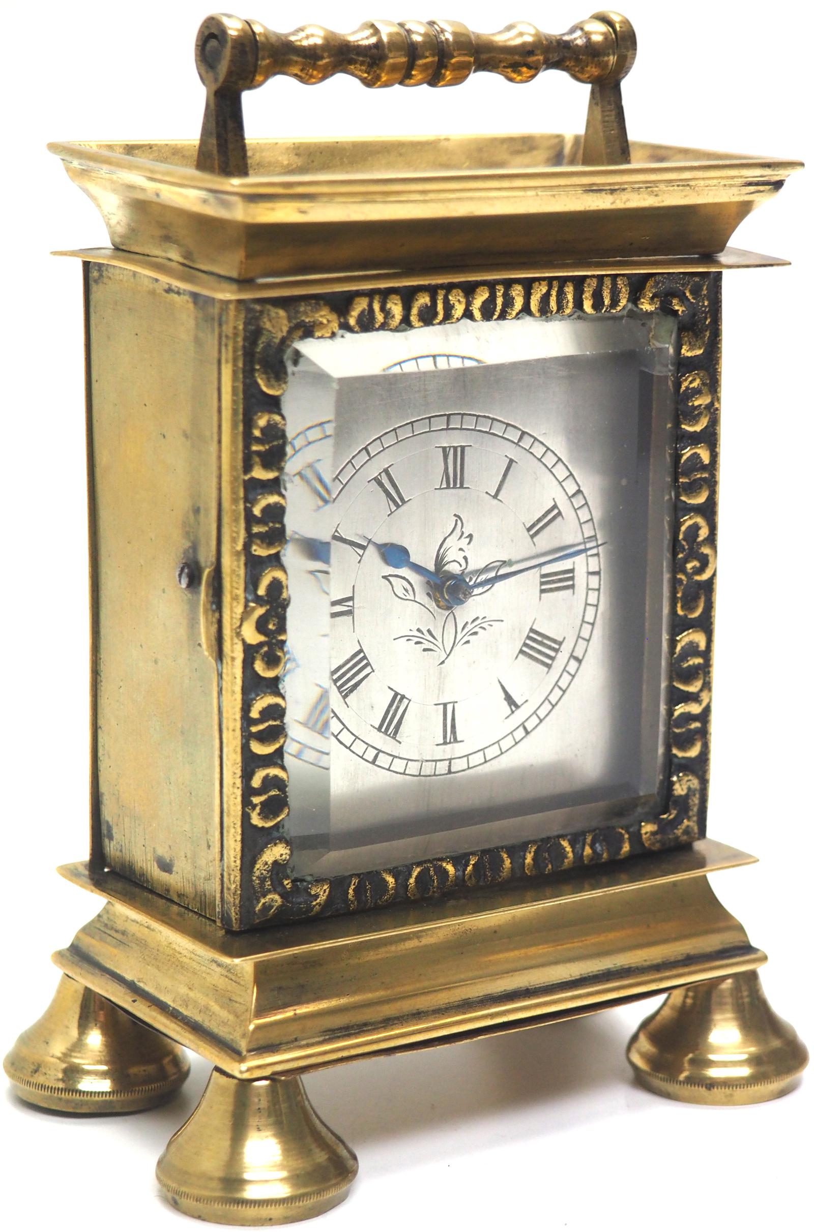 Rare Little Verge Carriage Clock Timepiece, Ormolu cased Silver Dial Mantel Clock (1 of 9)
