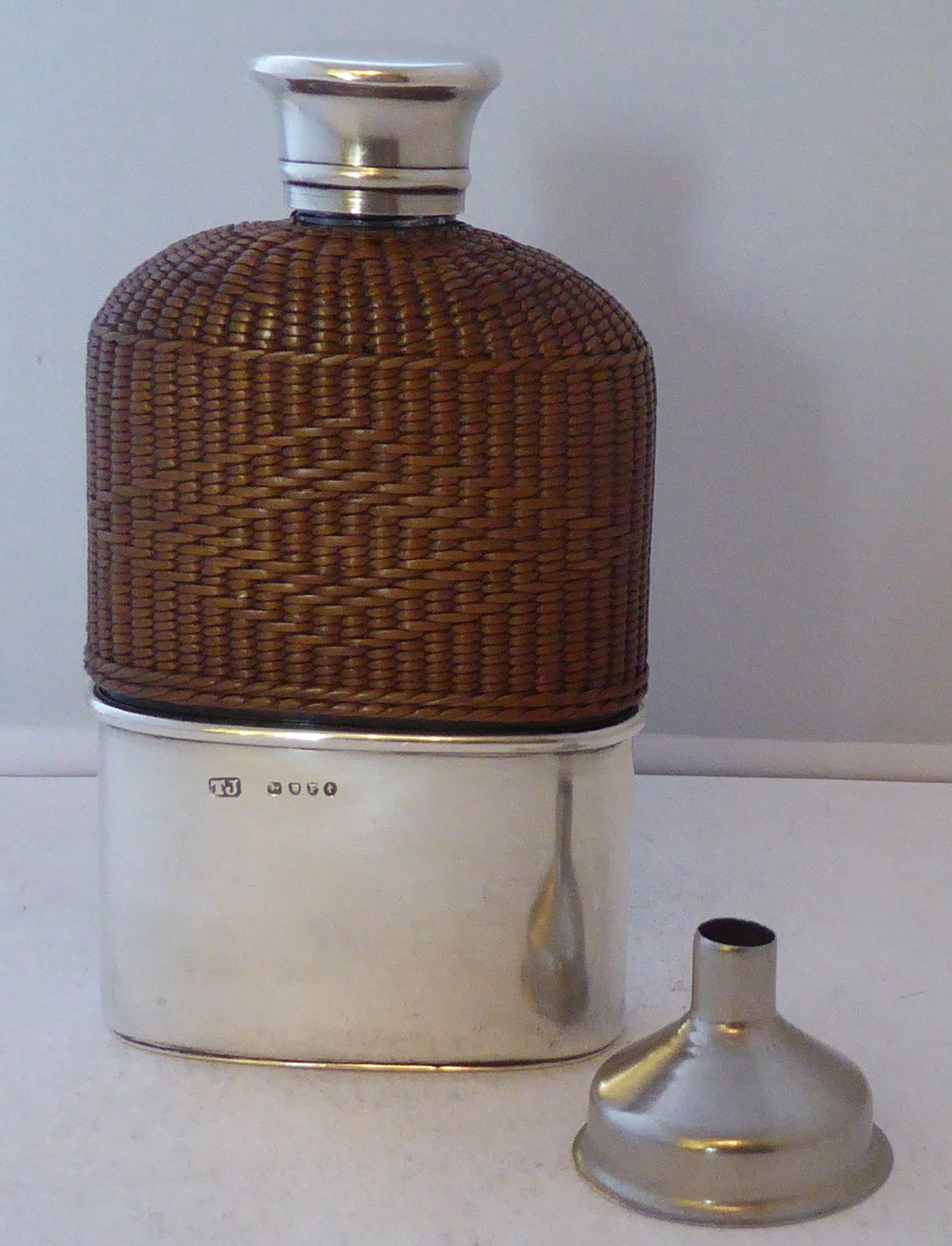 Rare London 1881 Solid Hallmarked Silver Hip Flask Wicker Bound Glass Body