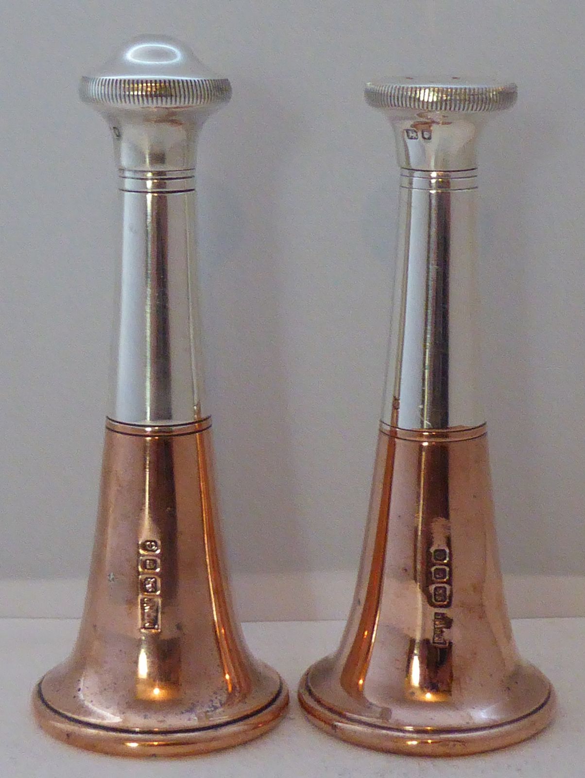 Rare Mappin & Webb Hunting Horn Solid Silver Cruet Set Salt & Pepper