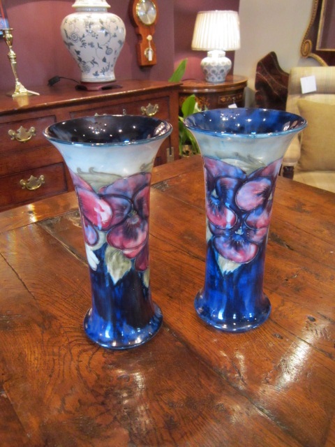 Rare Matching Pair of Moorcroft Pansy Vases c.1915