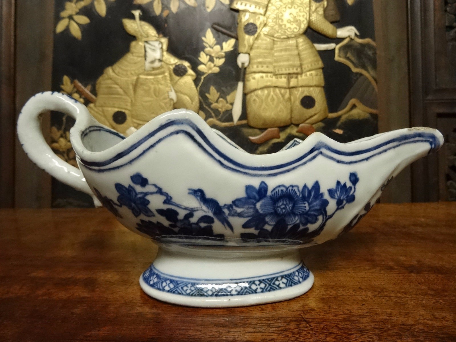 Rare Mid 18th Century Chinese Blue & White Porcelain Sauce - Gravy Boat Bowl