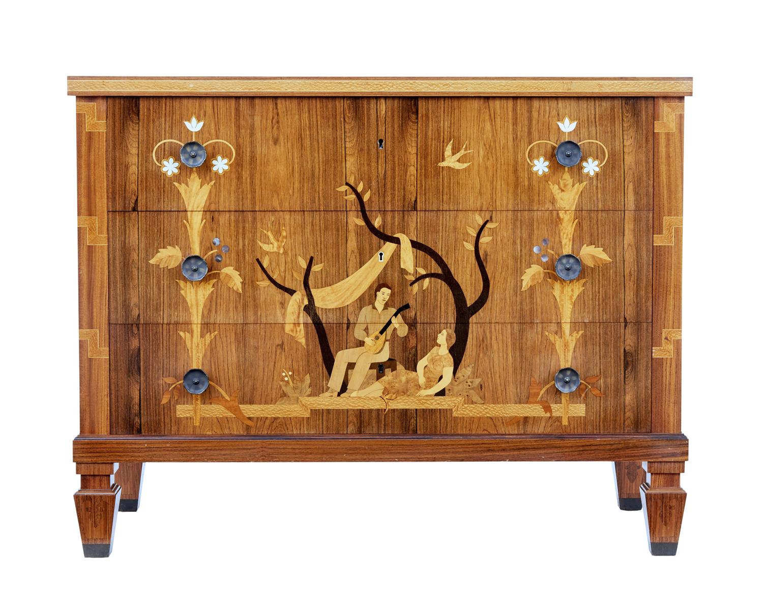 Rare Mid 20th Century Swedish Inlaid Chest of Drawers