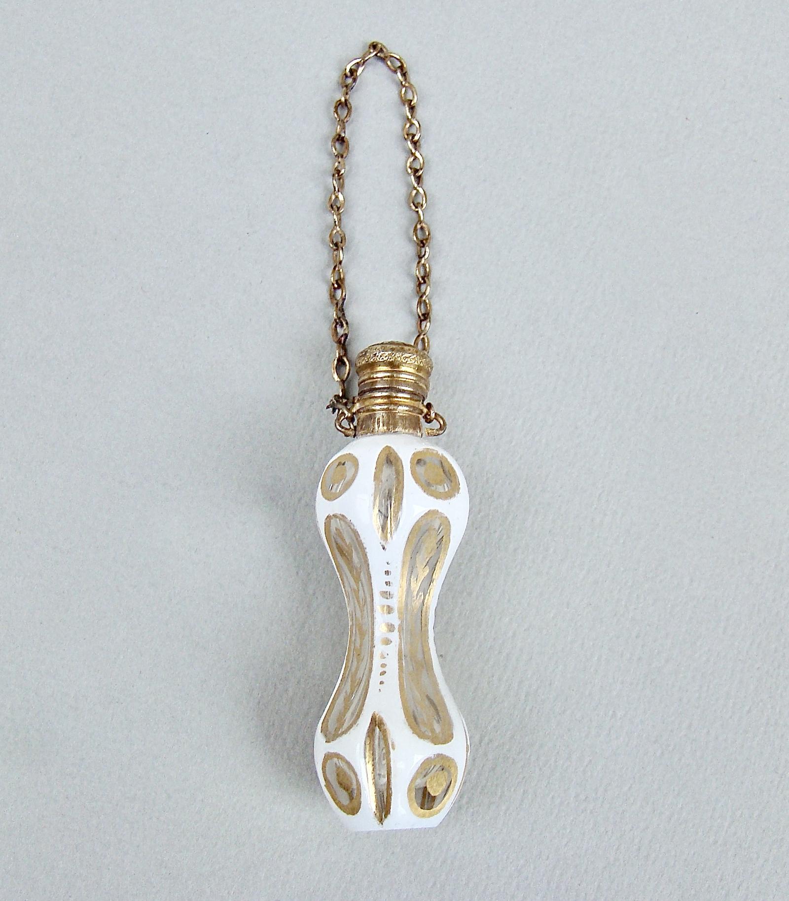 Rare Miniature 19th Century French Overlay Glass Chatelaine Scent Bottle c.1870
