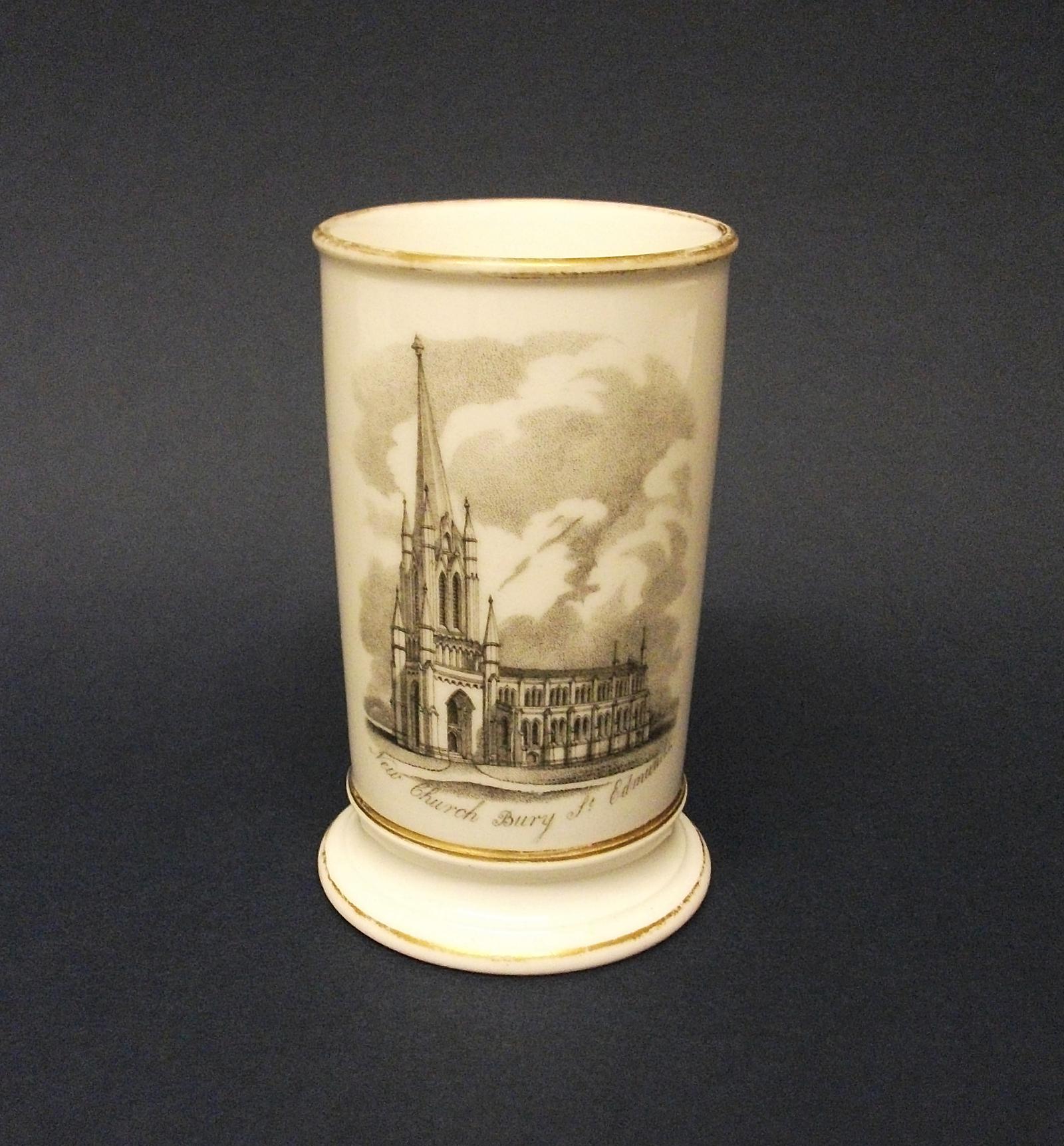 Rare Minton Bat Printed Spill Vase 'The Church at Bury St. Edmunds' c.1820