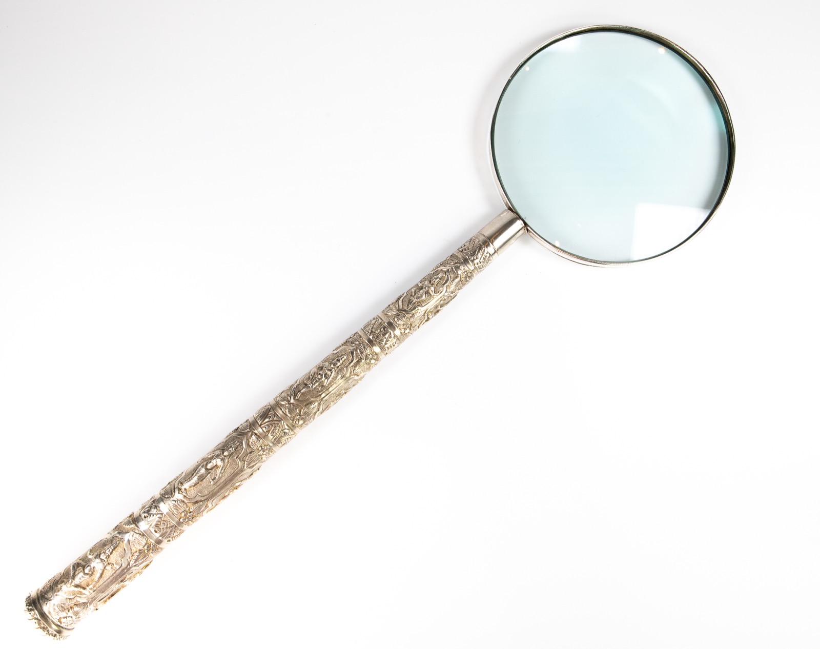 Rare Monumental Antique Indian Silver Magnifying Glass Madras 1890 Huge