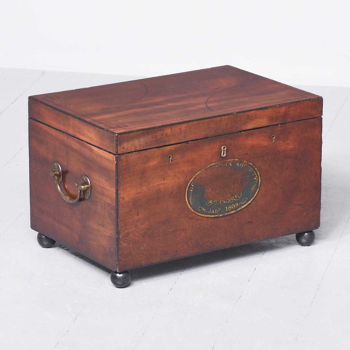 Rare Neat Sized Ebony Inlaid George III Mahogany Trunk