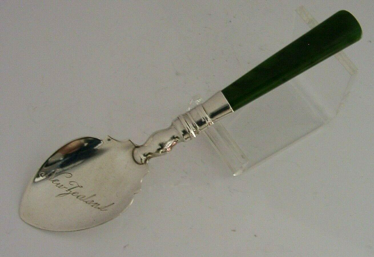 Rare New Zealand Solid Sterling Silver Jade Spoon 1924 Antique