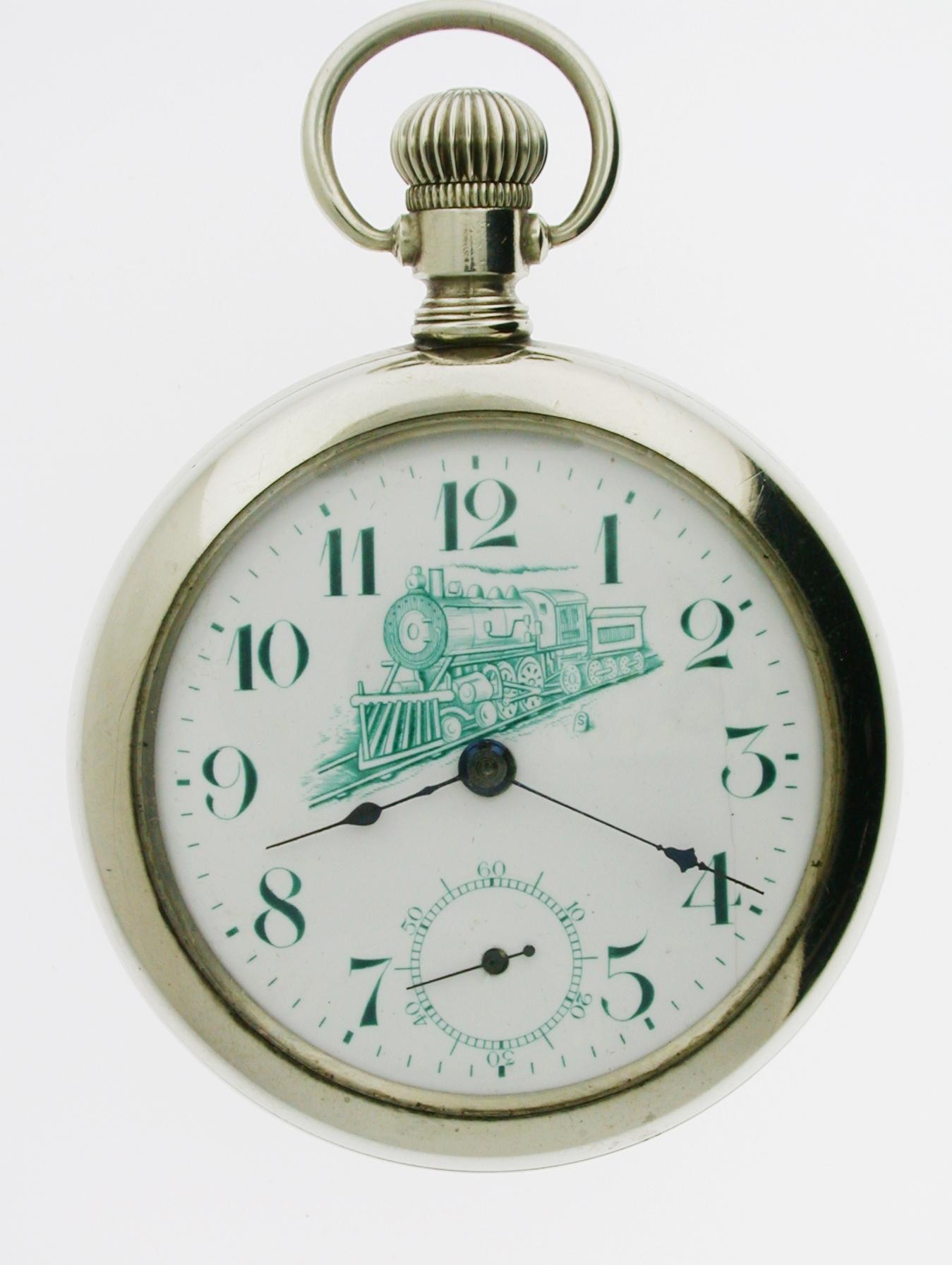 Rare Nickel Railway Pocket Watch With Locomotive on Dial