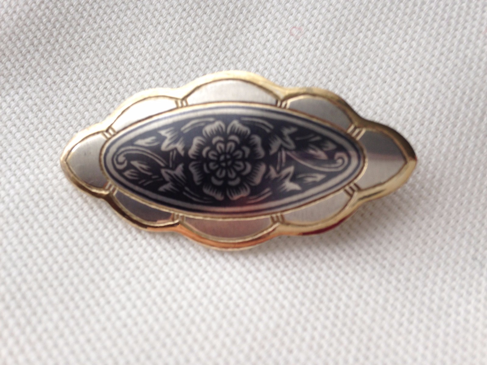 Rare Niello Sterling Russian Silver 925 Brooch Gold Gilded 60s
