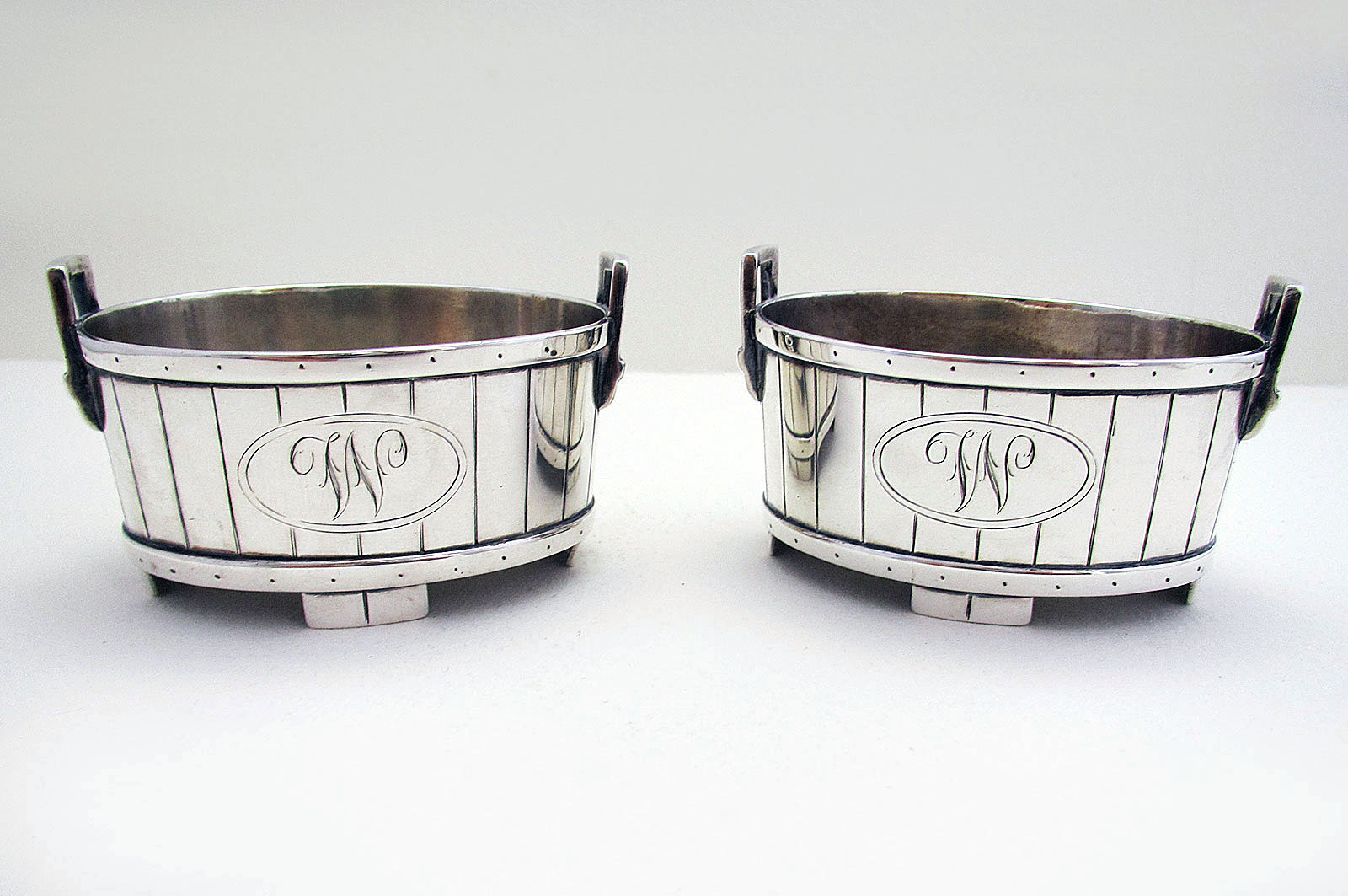 Rare of Pair Novelty Antique Sterling Silver Salt Cellar Dishes Salts Bowls, by Ball, Black & Co. New York 407 c.1880