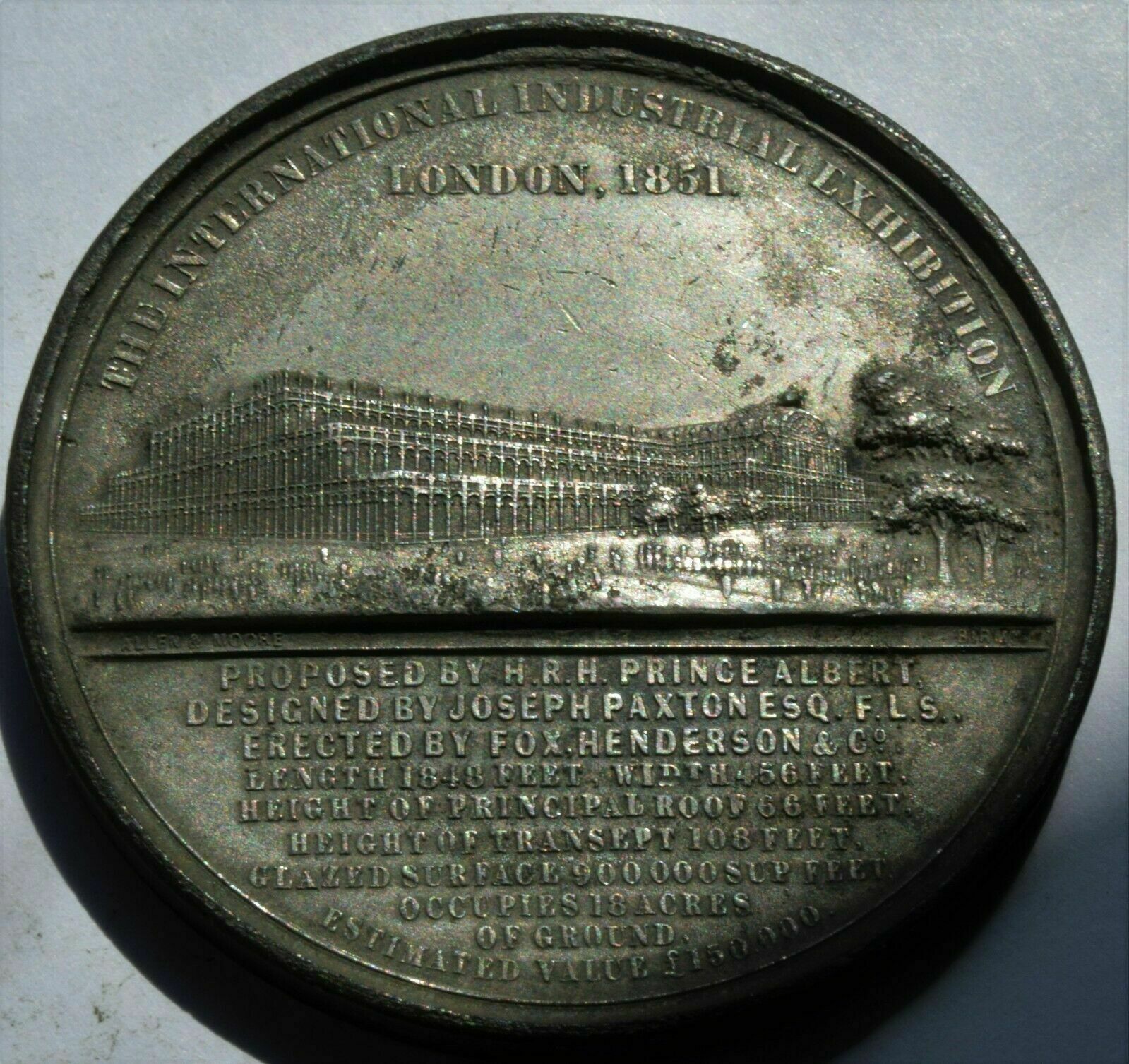 Rare Original 1851 Great Exhibition Crystal Palace White Metal Medal
