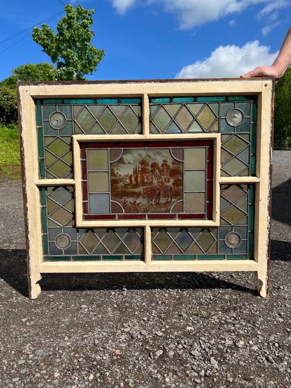 Rare Painted & Leaded Glass Window