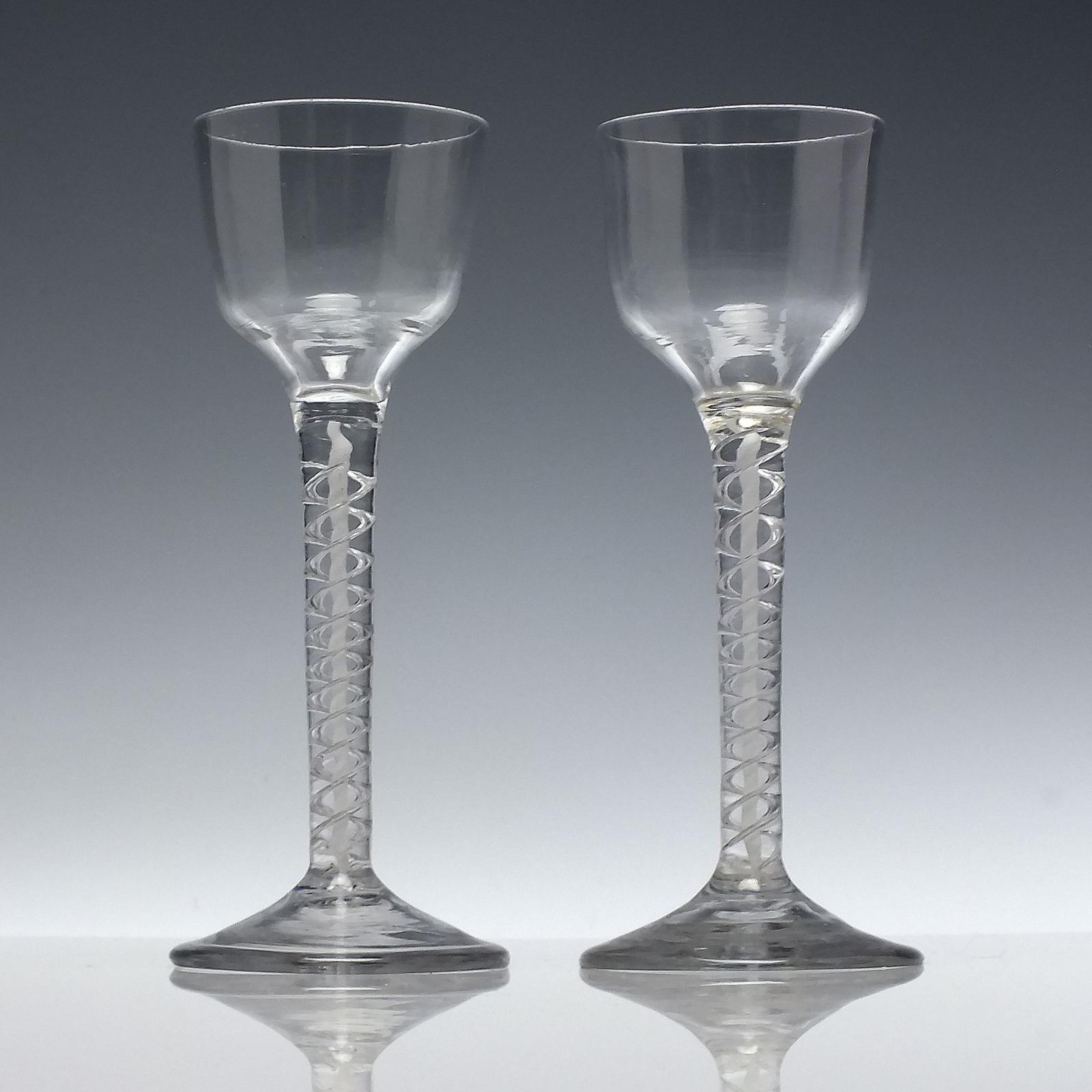 Rare Pair of 18th Century Mercury Mixed Twist Wine Glasses c.1755