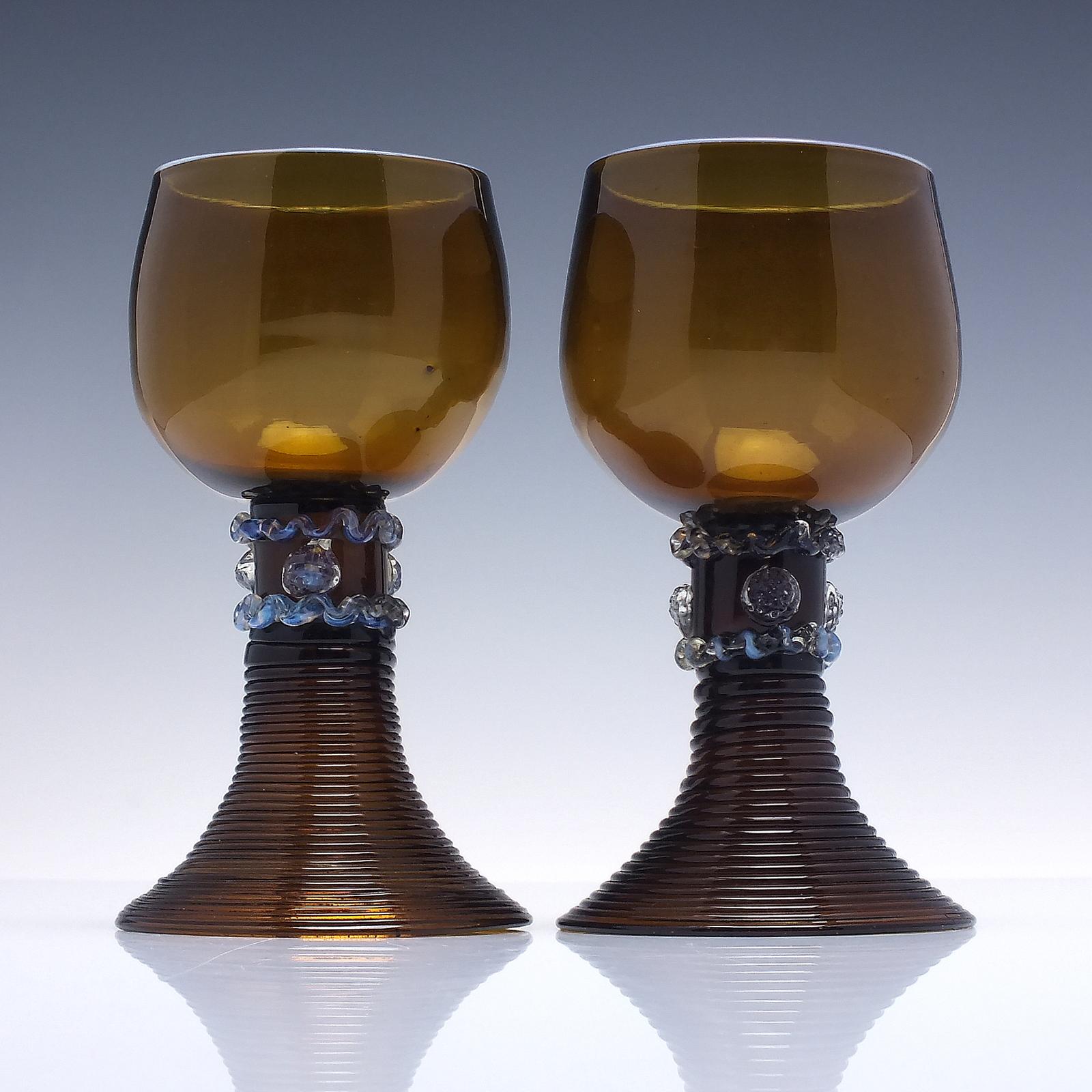 Rare Pair of 19th Century Amber Wine Roemer Glasses c.1870