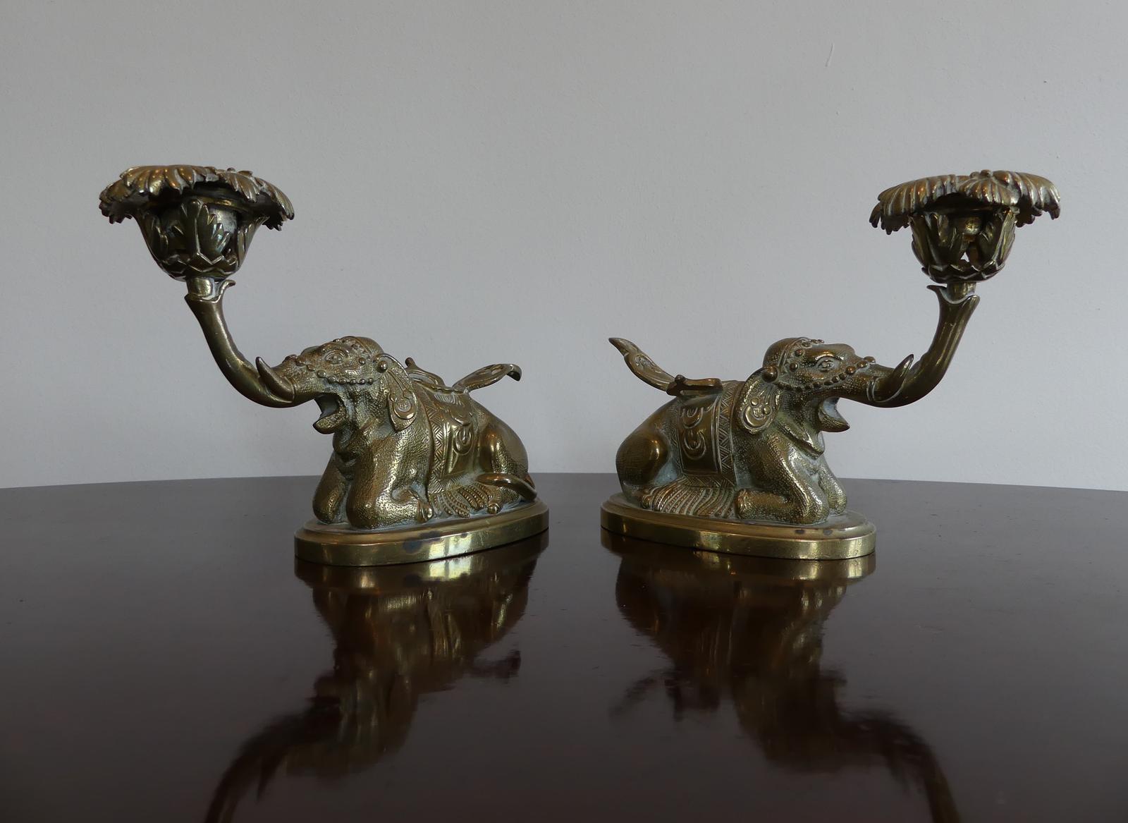 Rare Pair of 19th Century Bronze Elephant Candlesticks