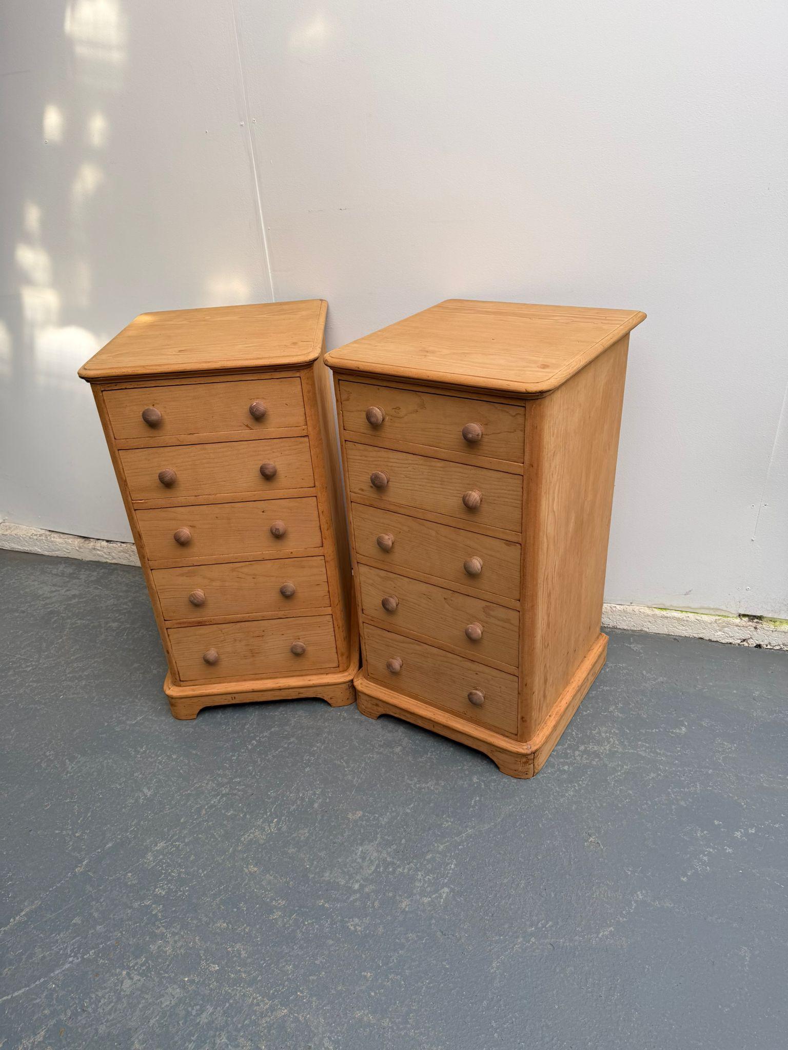 Rare Pair of Antique Pine Victorian 5 Drawer Chest of Drawers to wax / paint