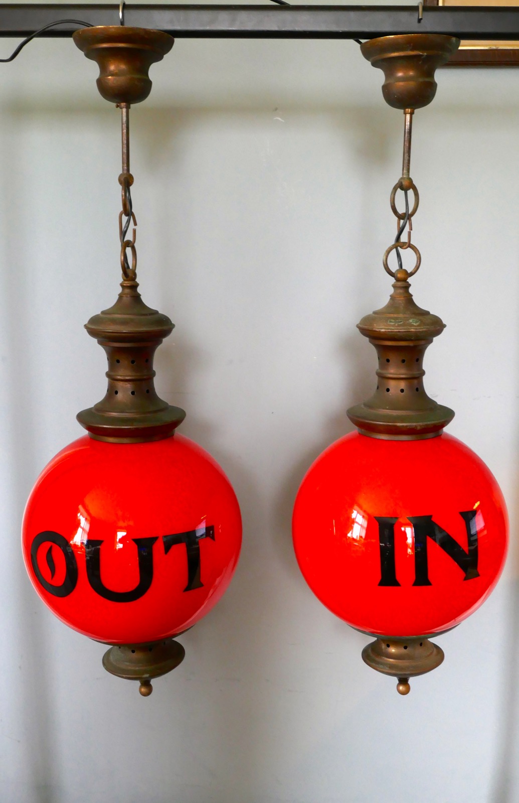 Rare Pair of Art Deco Porch Lamps Entrance & Exit Globe Lamps