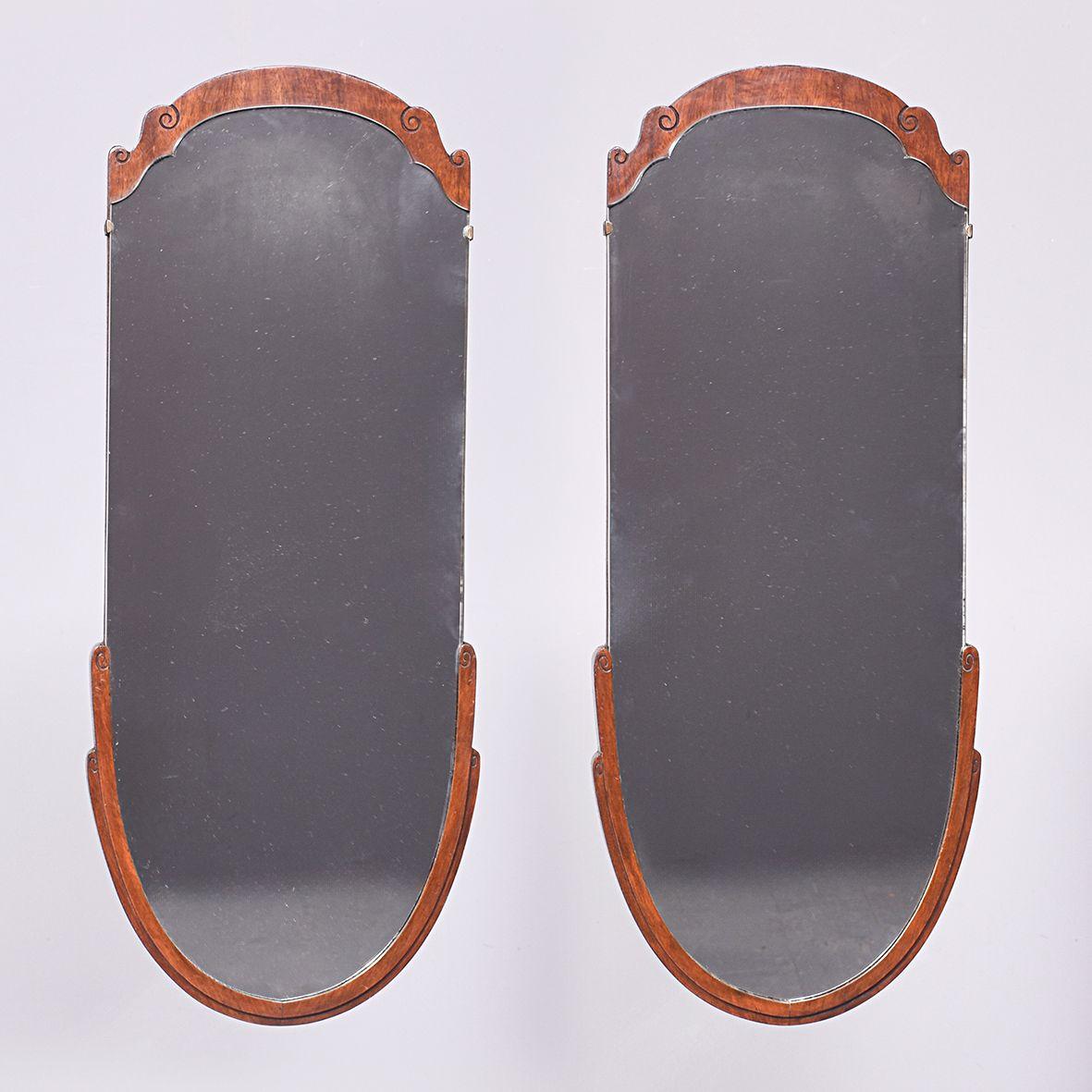 Rare Pair of Art Deco Wall Mirrors with Partial Mahogany Frames
