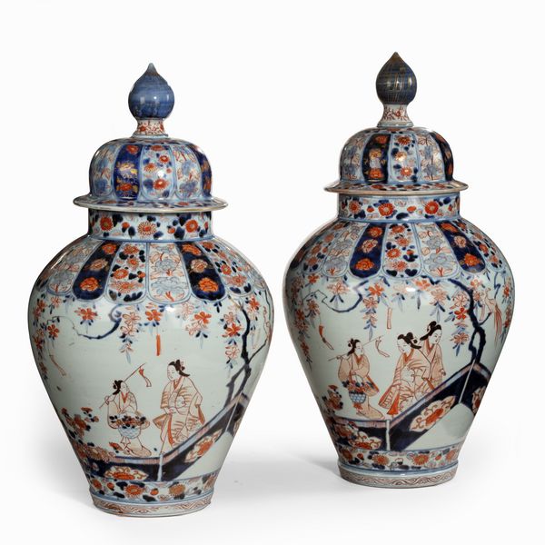 Rare Pair of Early Edo Period Imari Vases & Covers