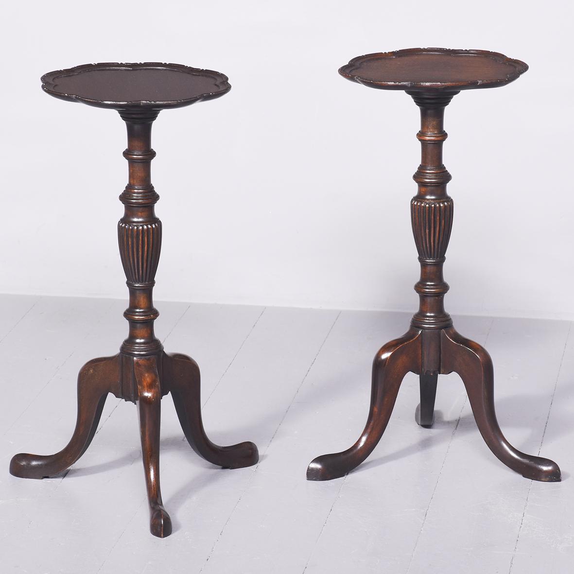 Rare Pair of Edwardian, Chippendale-style Mahogany Wine Tables