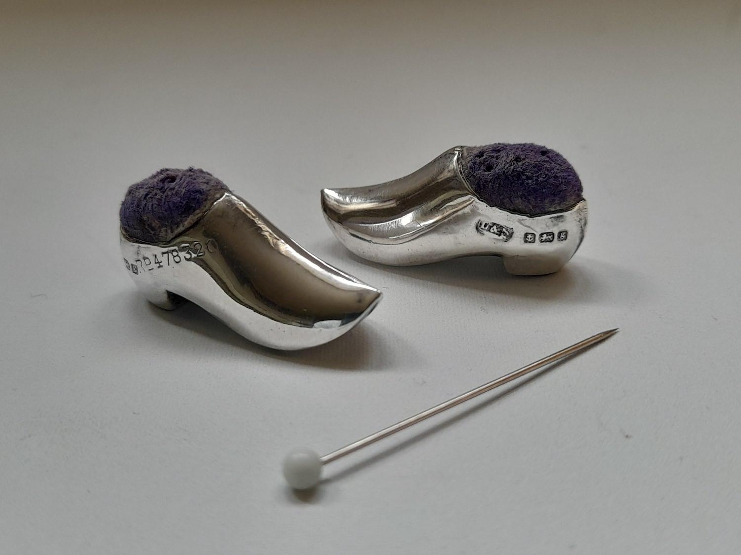 Rare Pair of Edwardian Silver Miniature Clog Pin Cushions (1 of 8)
