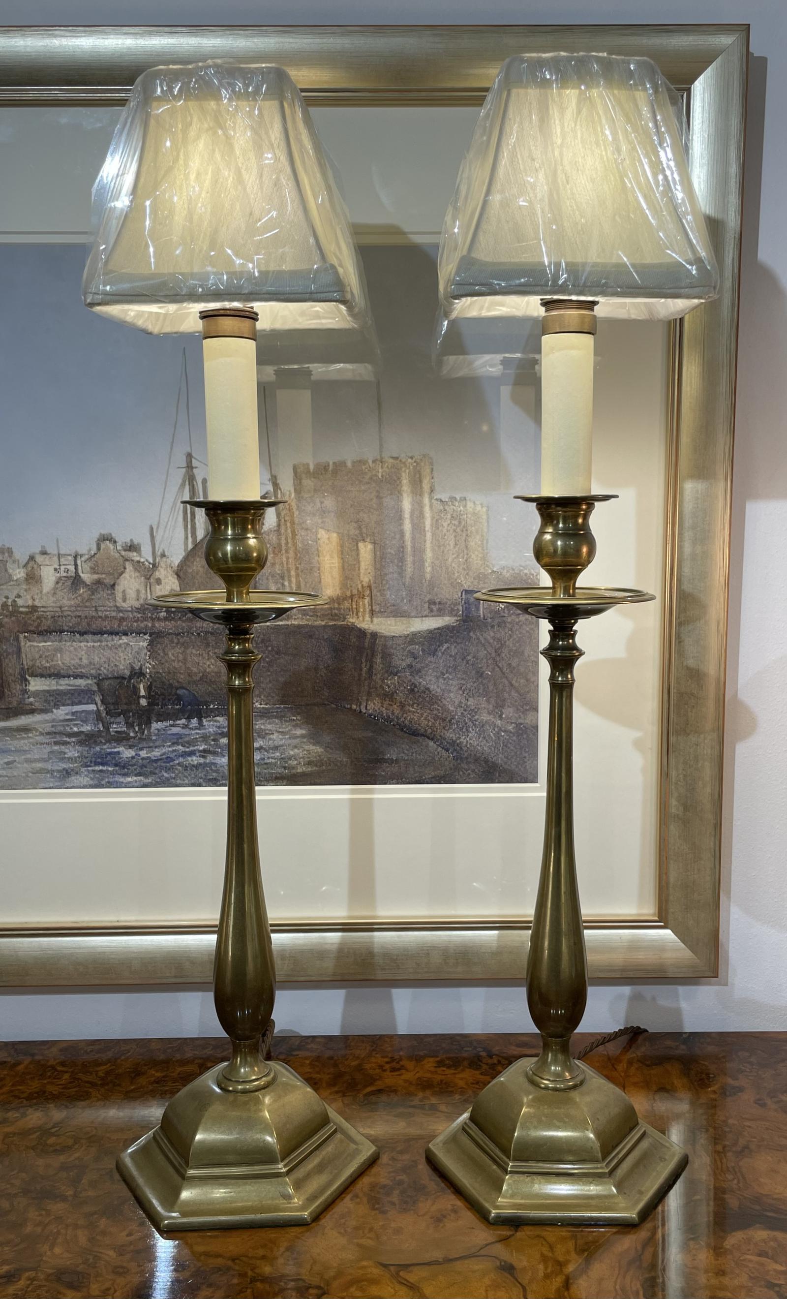 Rare Pair of Faraday & Son Adjustable Brass Table Lamps