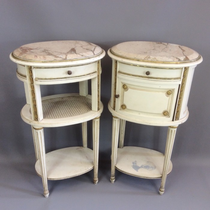 Rare Pair of French Oval Painted Bedside Tables (1 of 1)